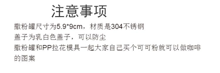 商品名称:花式咖啡拉花模具304咖啡撒粉罐(单位:个)
