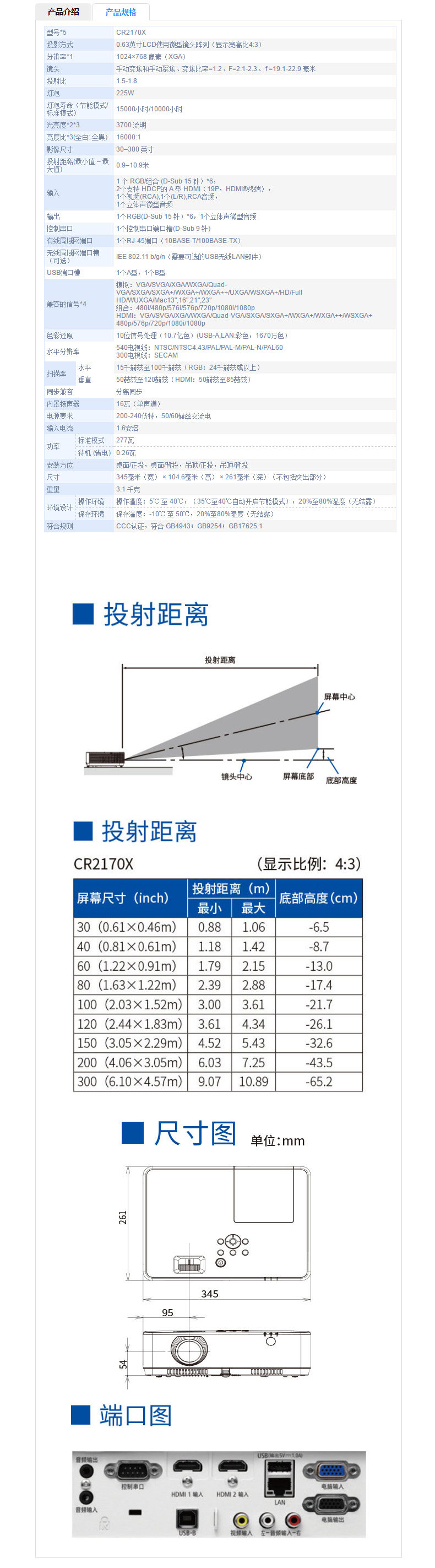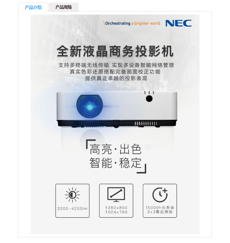 商品名称:NEC NP-CR2170X投影机(含幕布、线材、支架保修一年)(单位:台)