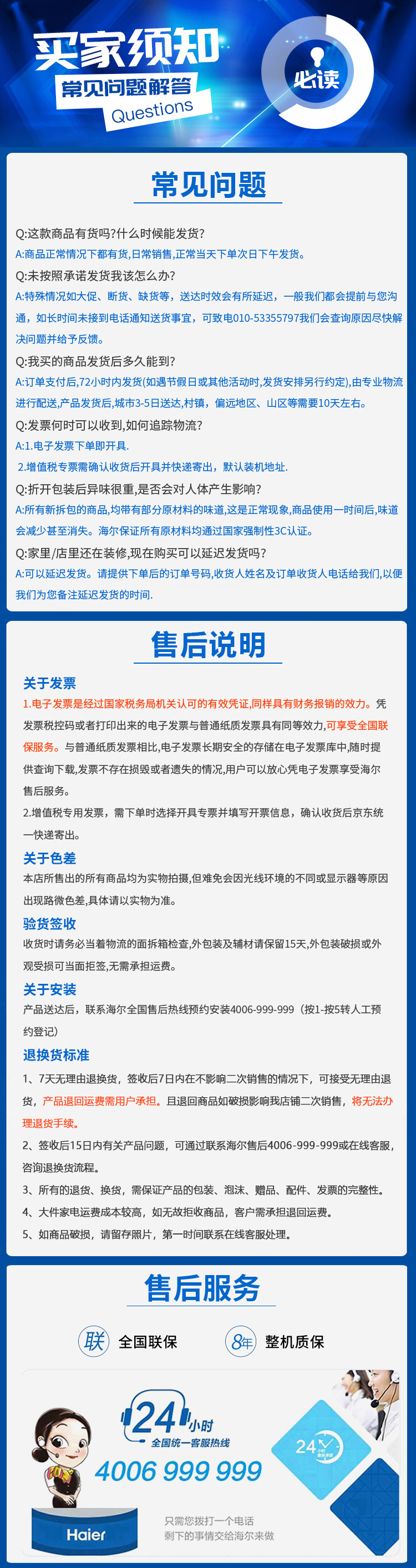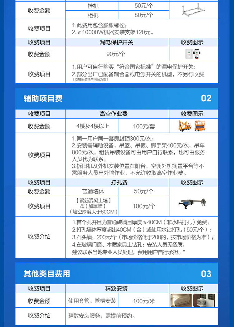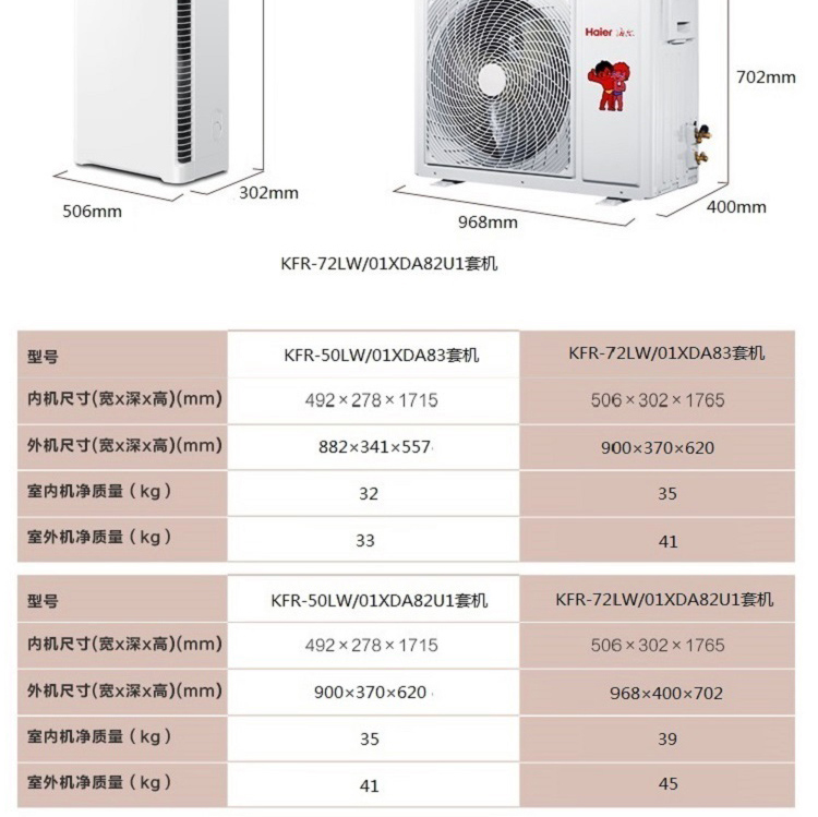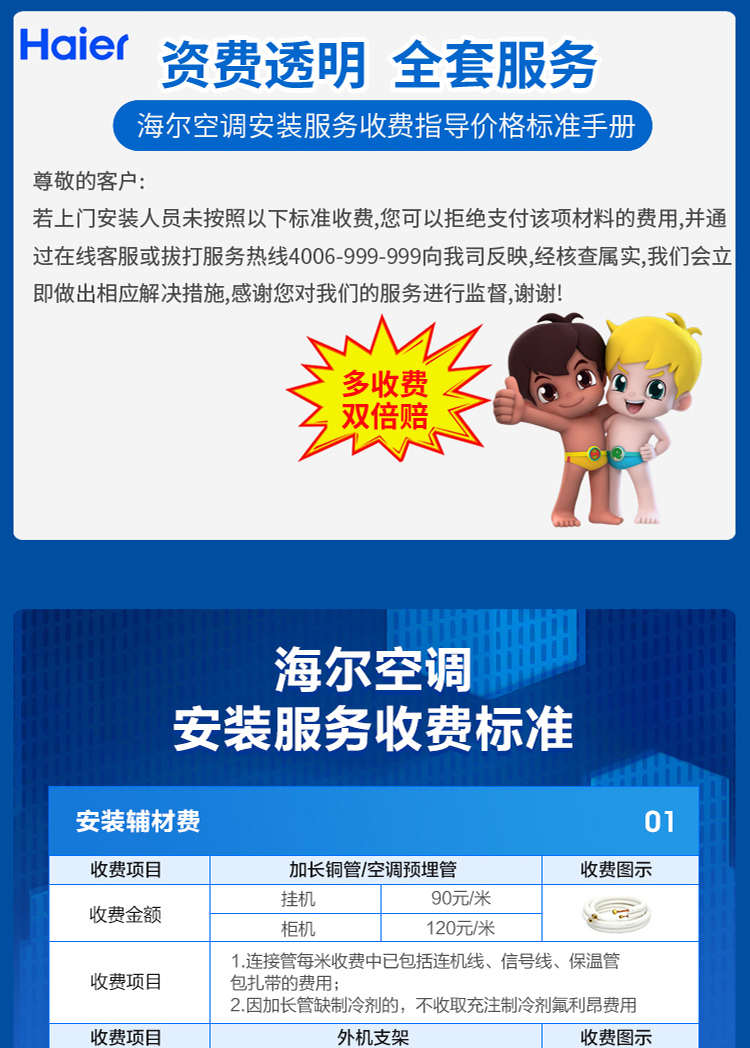 商品名称:海尔KFR-72LW/01XDA82U1 二级能效3匹冷暖变频柜式空调(含拆旧机、打墙孔、漏电开关、加长铜管12米、PVC排水管12米)(单位:台)