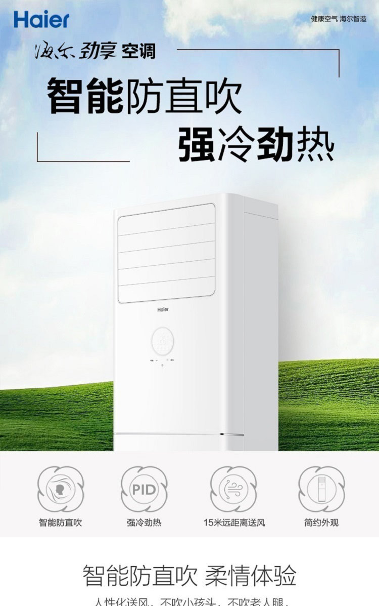 海尔KFR-72LW/01XDA82U1 二级能效3匹冷暖变频柜式空调(含拆旧机、打墙孔、漏电开关、加长铜管12米、PVC排水管12米)