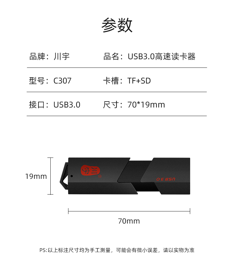 商品名称:川宇高速3.0读卡器 双卡单读C307(适用SD/TF)(单位:个)