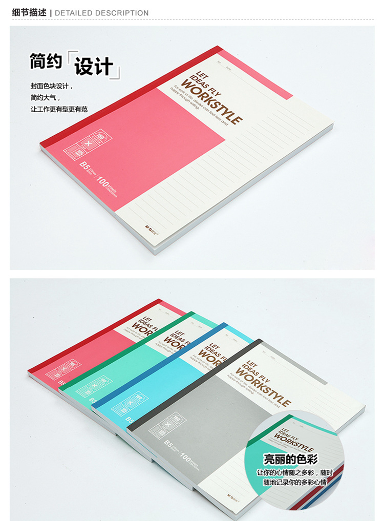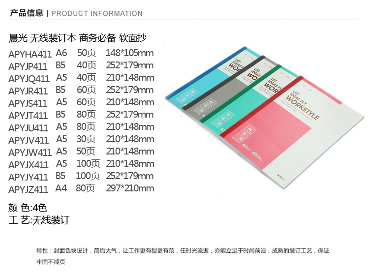 商品名称:晨光APYJS411办公A5无线装订本软抄记事本 60页/本 颜色随机(单位:本)