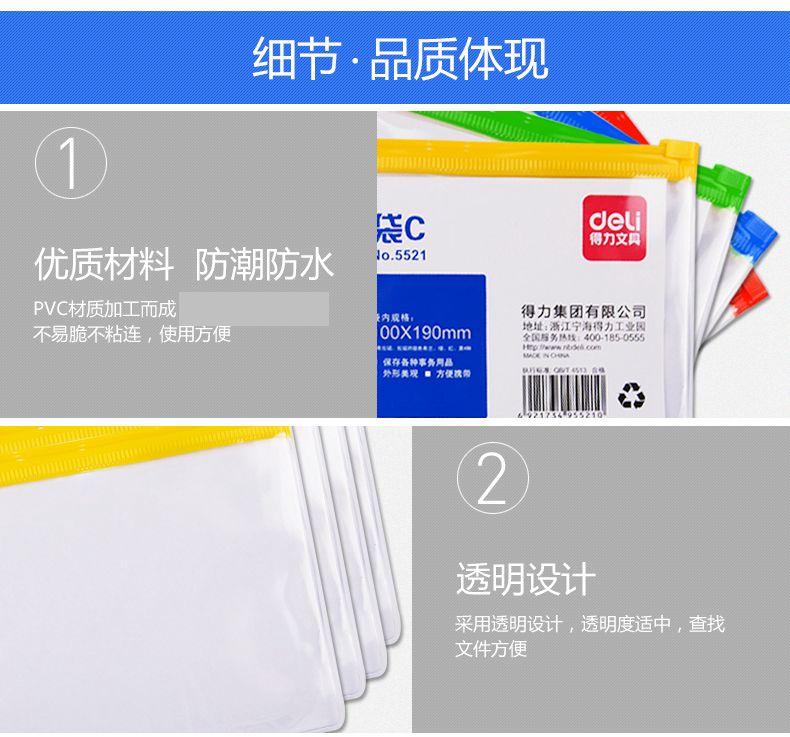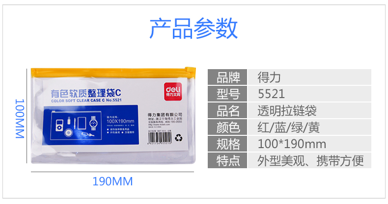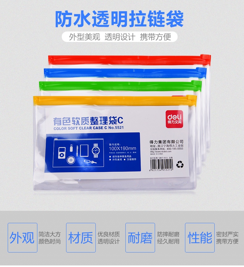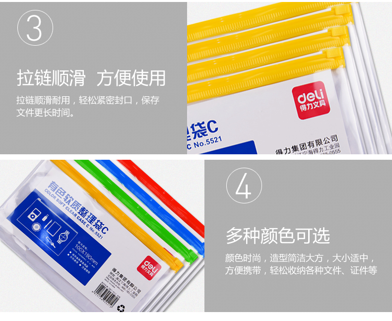 商品名称:得力5521拉链袋 颜色随机(单位:个)