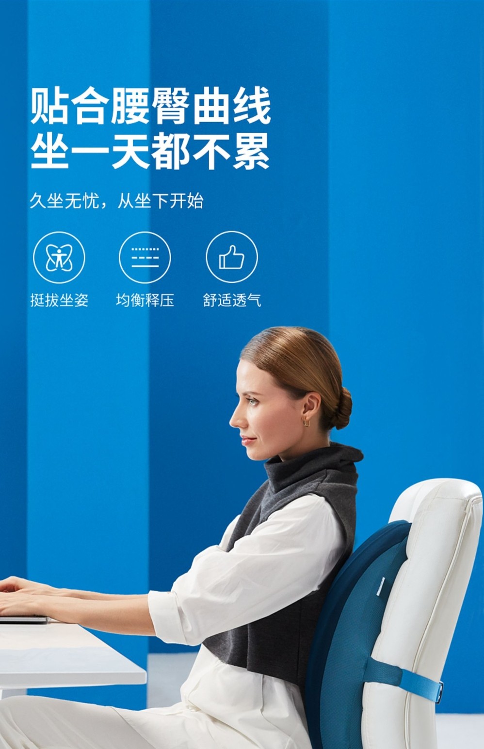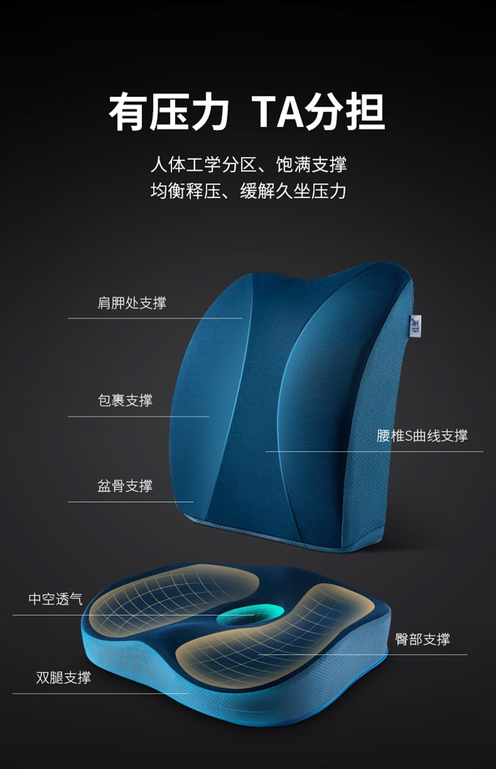 商品名称:佳奥椅垫坐垫办公室椅子美臀护腰座垫靠垫一体 护脊竹炭款 藏青色(单位:张)