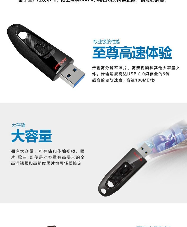 商品名称:闪迪32GB USB3.0 U盘 CZ48至尊高速 黑色(单位:个)