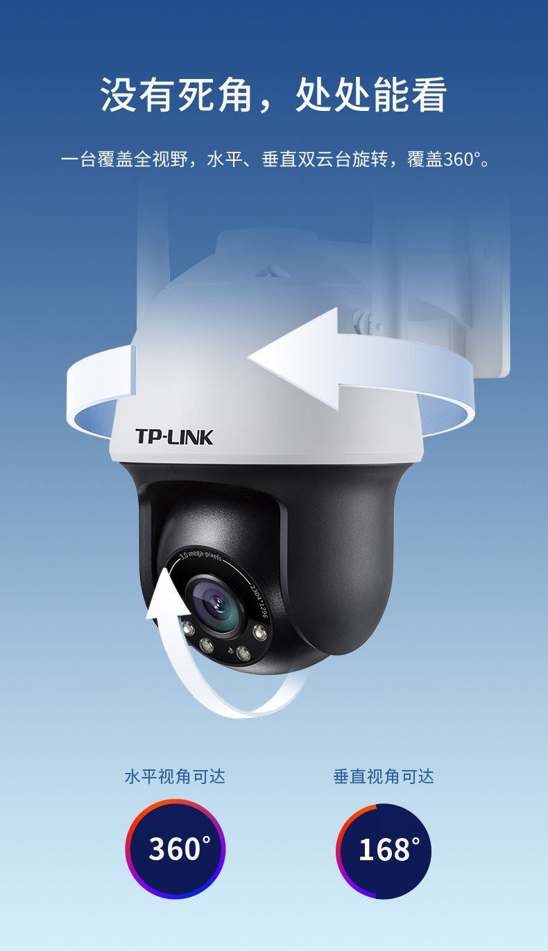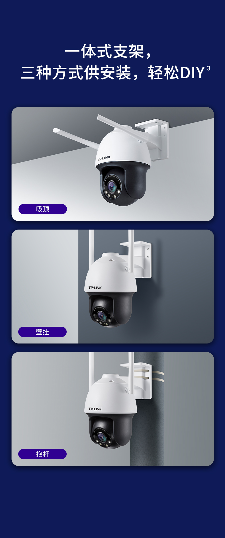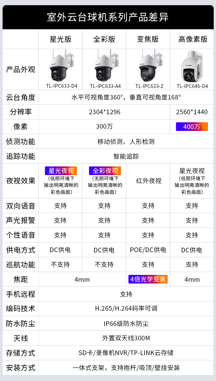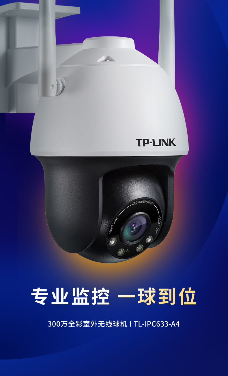 TP-LINK无线监控室外摄像头监控器300万超清日夜全彩户外防水云台球机网络wifi远程IPC633-A4电源套装版