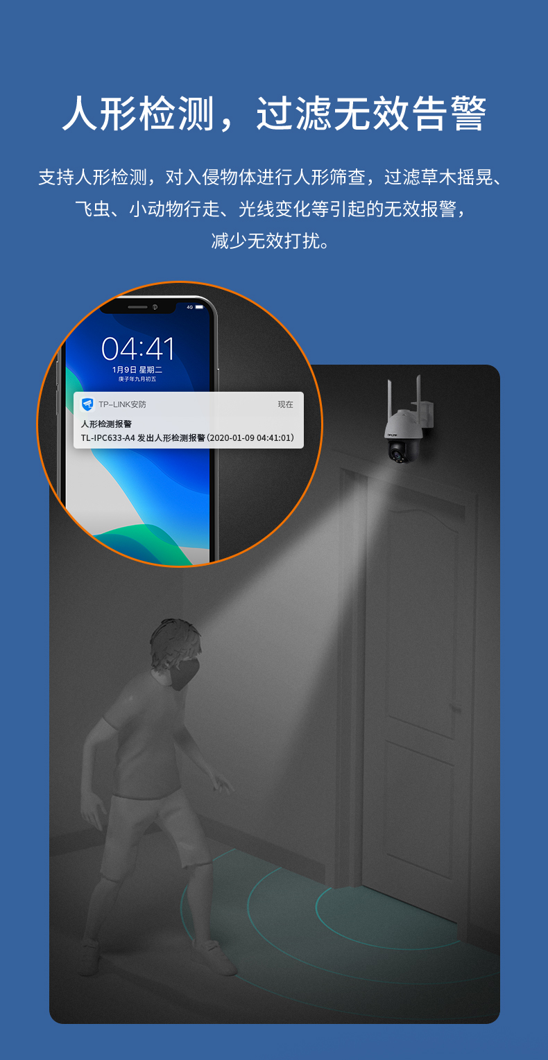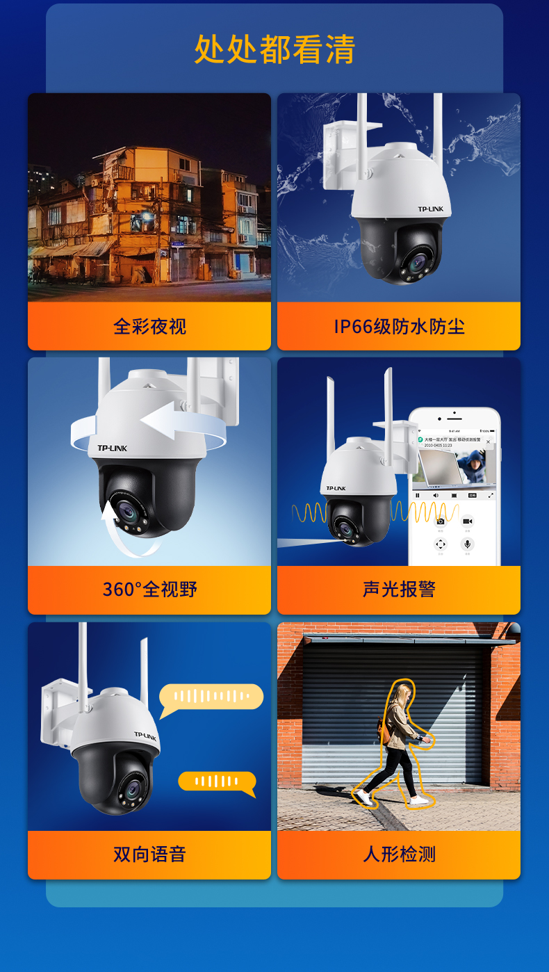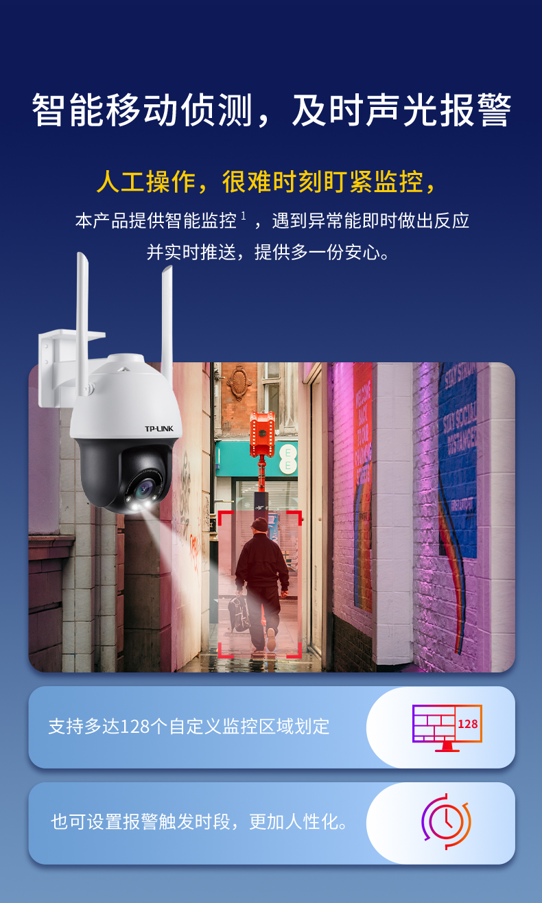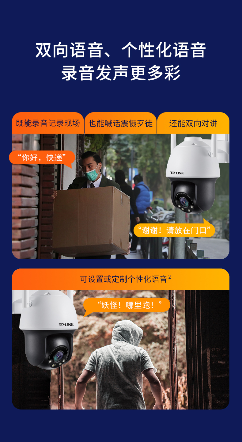 TP-LINK无线监控室外摄像头监控器300万超清日夜全彩户外防水云台球机网络wifi远程IPC633-A4电源套装版
