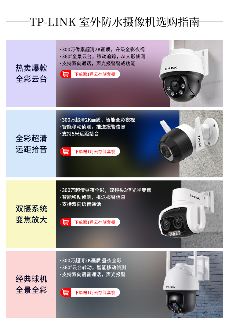 商品名称:TP-LINK无线监控室外摄像头监控器300万超清日夜全彩户外防水云台球机网络wifi远程IPC633-A4电源套装版(单位:台)
