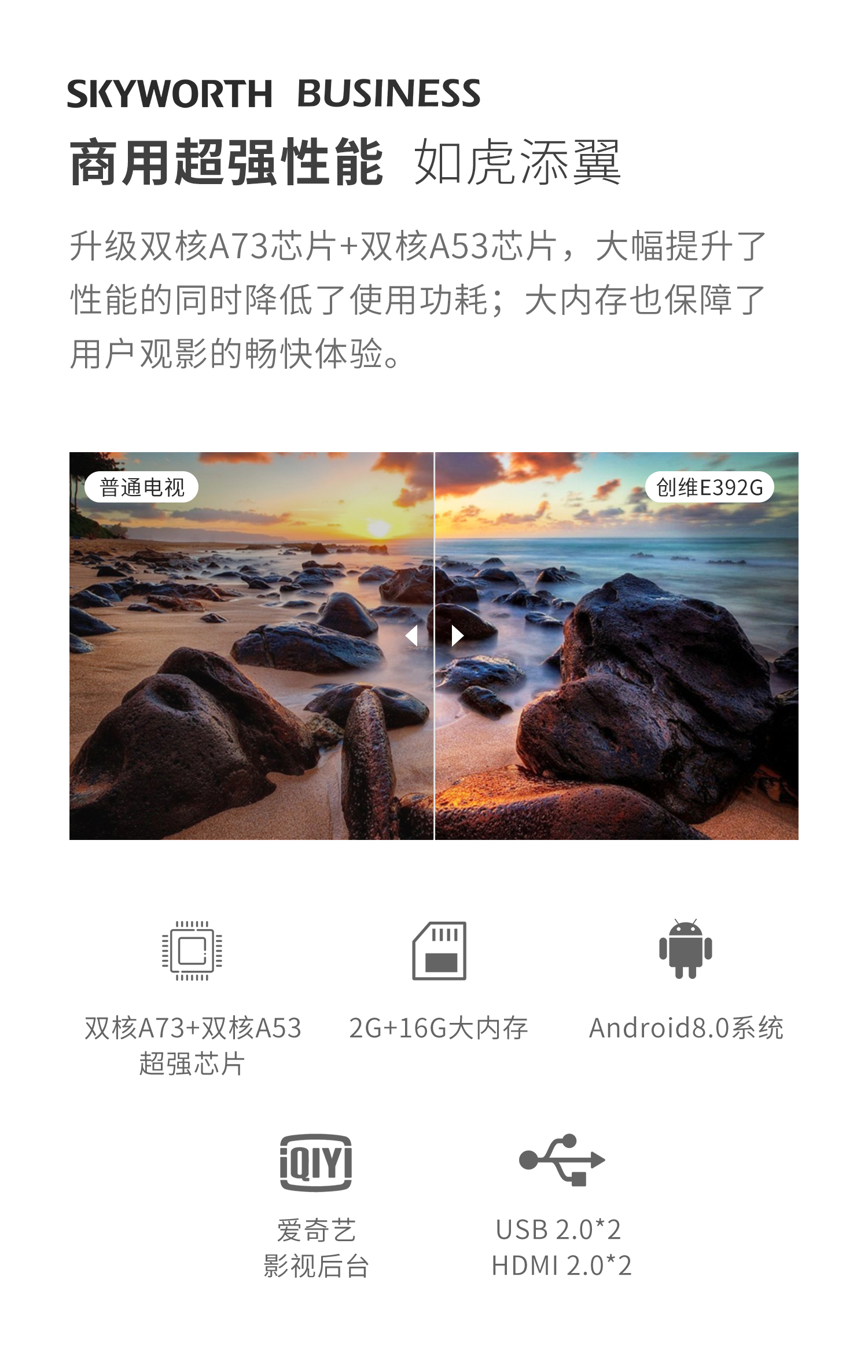 创维65E全面屏电视机392G 65英寸4K超高清 HDR (含挂架)