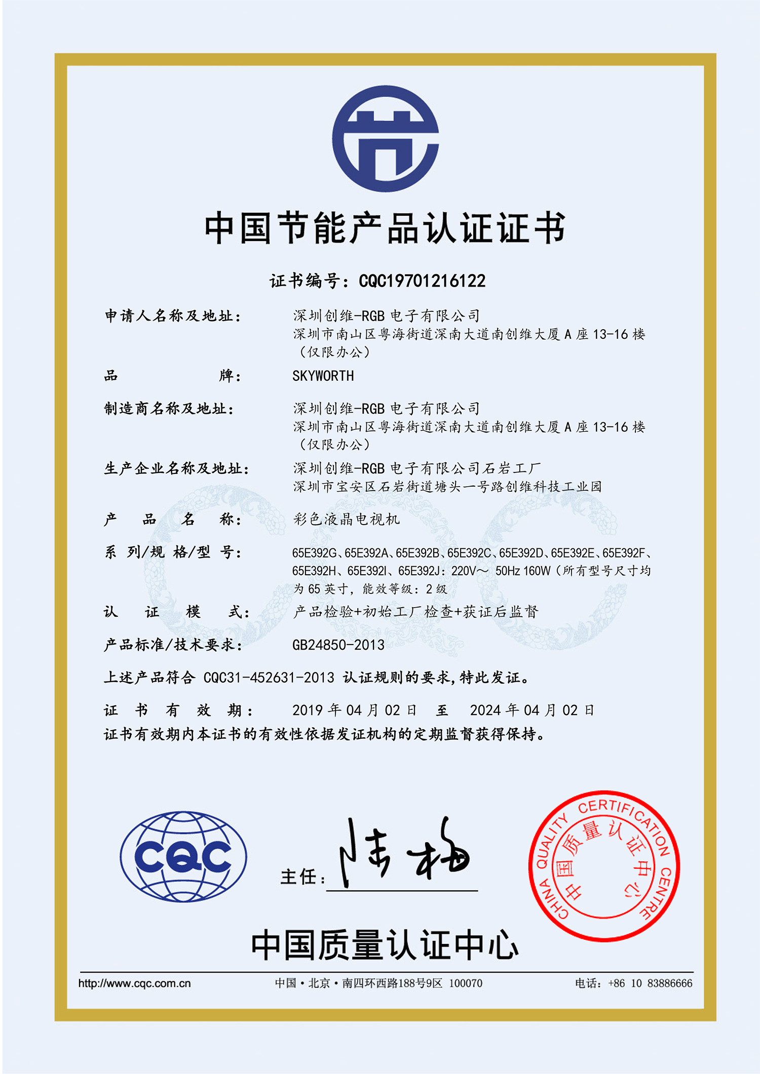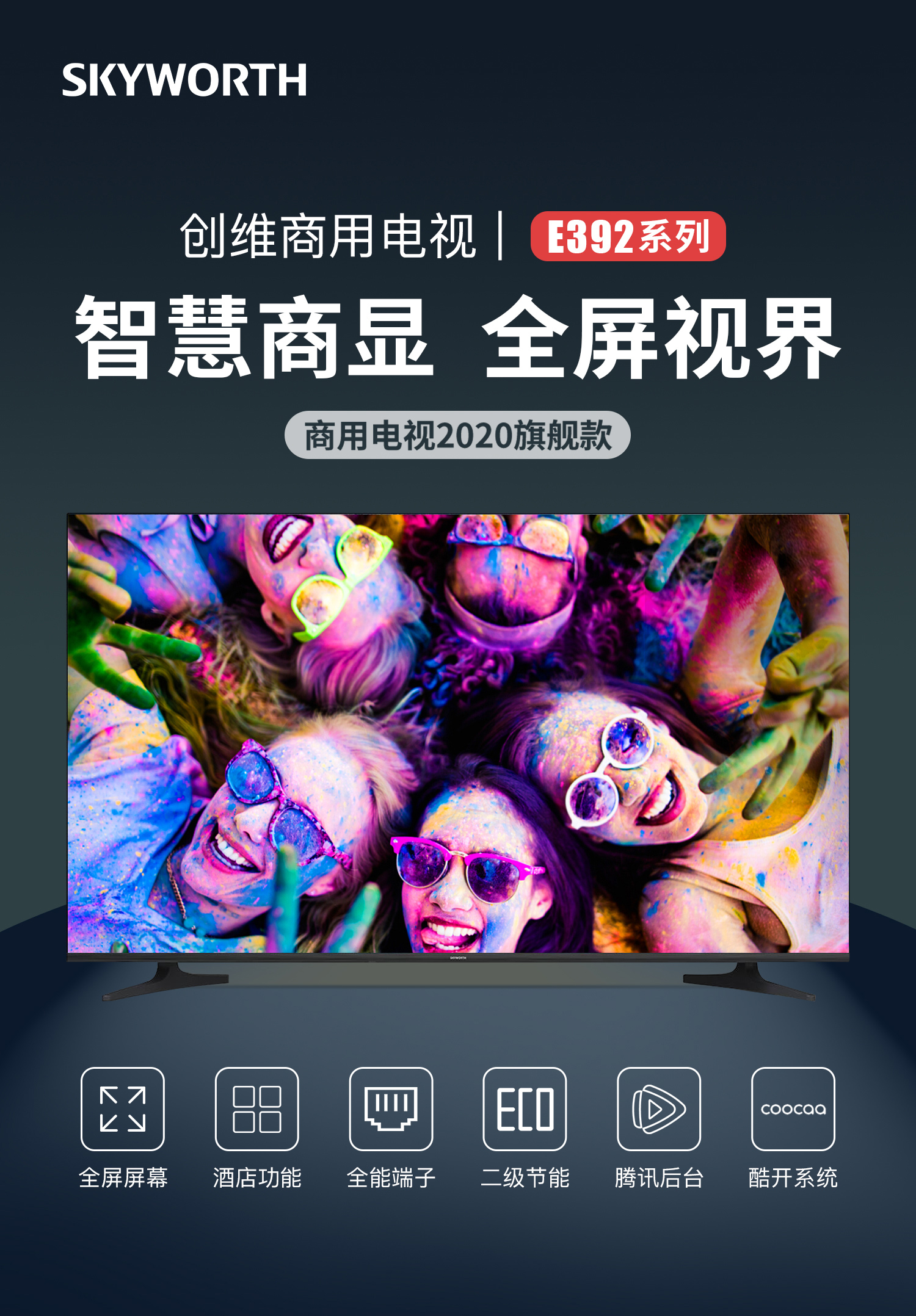 商品名称:创维65E392G全面屏电视机 65英寸4K超高清 HDR (含挂架)(单位:台)