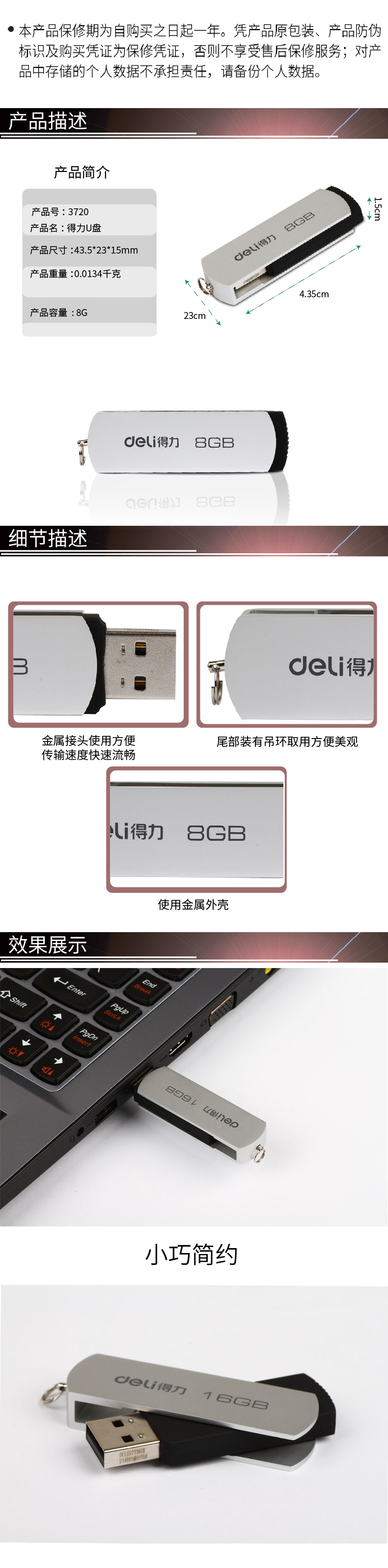 商品名称:得力3720 U盘8G 银色(单位:个)