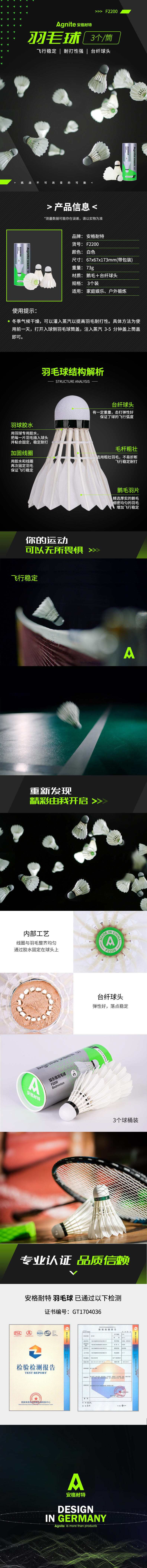 商品名称:安格耐特F2200羽毛球 白色 3个/筒(单位:筒)