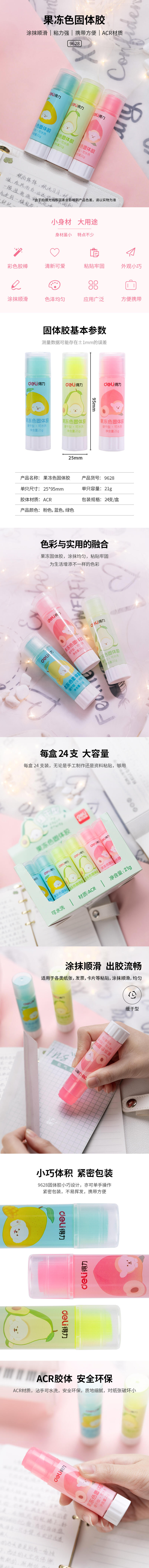 商品名称:得力9628果冻色固体胶 混色 21g/支 24支/盒(单位:支)