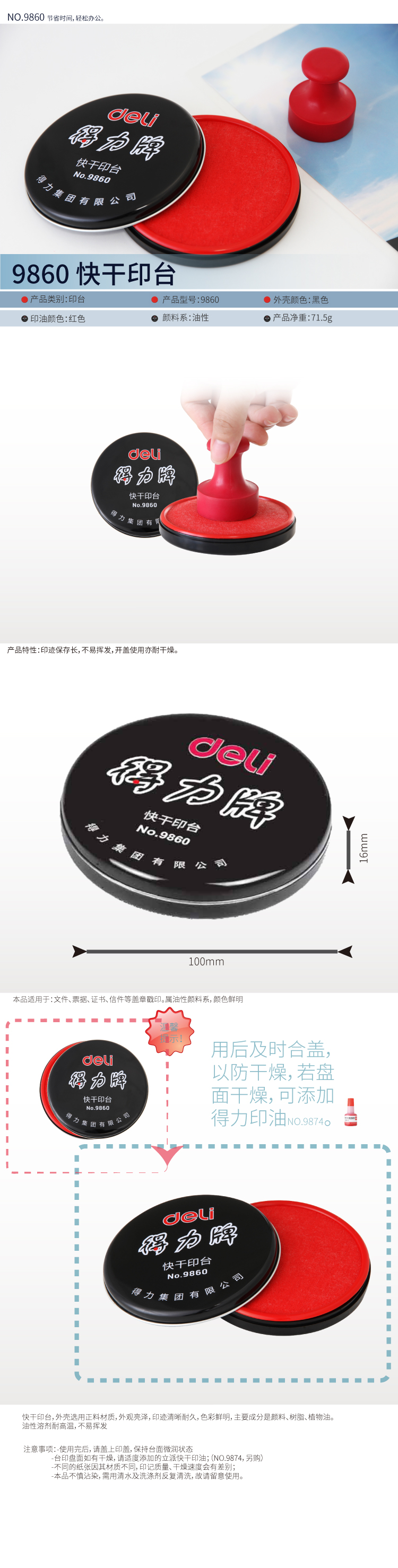 得力9860快干印台 红色