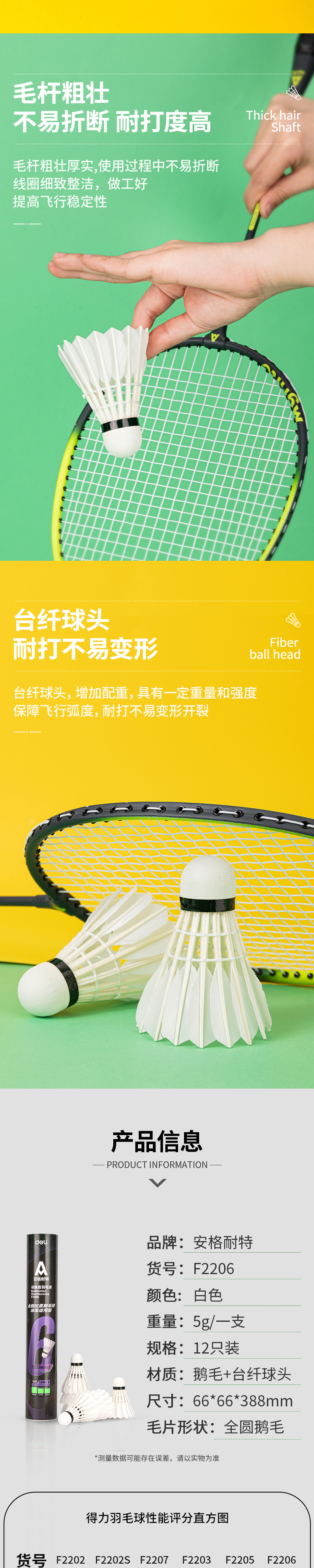 商品名称:安格耐特F2206羽毛球 白色 12个/筒(单位:筒)