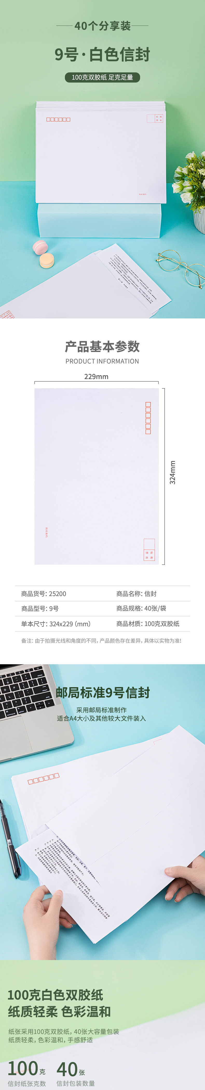 商品名称:得力25200白色信封(混) 9号 40个/包(单位:包)