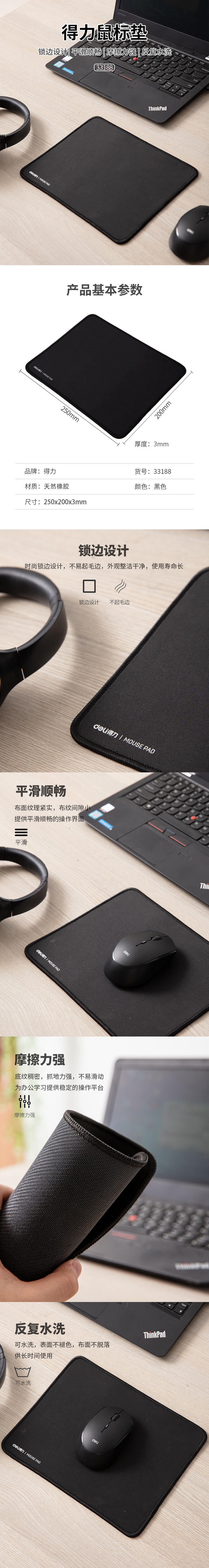 商品名称:得力33188鼠标垫 黑色(单位:块)