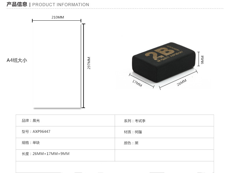 商品名称:晨光AXP96447 美术橡皮擦2B考试学生橡皮擦米菲动漫 72块/盒 黑色(单位:块)