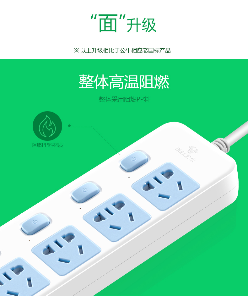 商品名称:公牛GN-316新国标开关插座排插5位 分控 1.8米(单位:个)