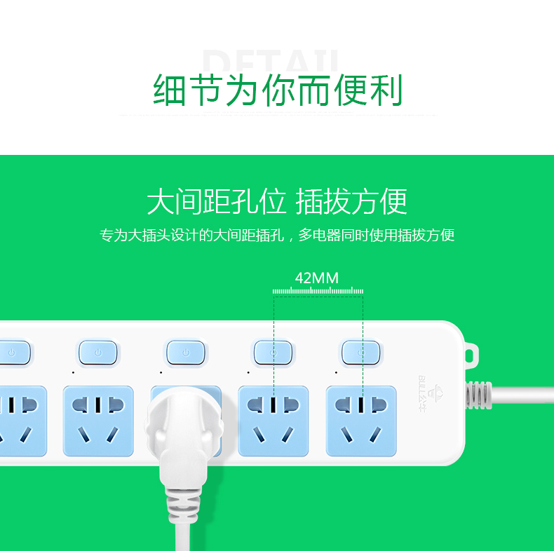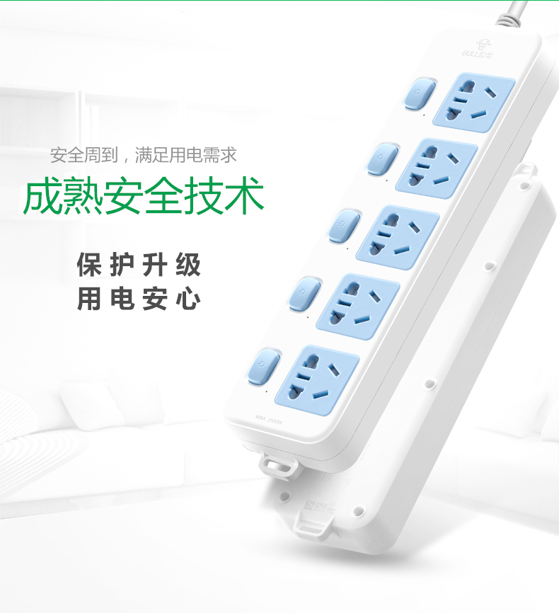 公牛GN-316新国标开关插座排插5位 分控 1.8米(单位:个)