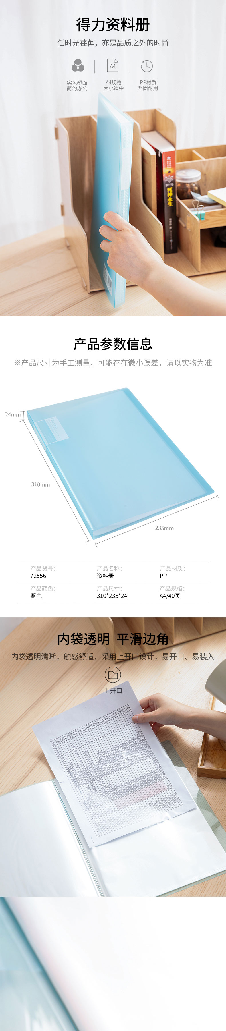 商品名称:得力72556资料册40页 颜色随机(单位:个)
