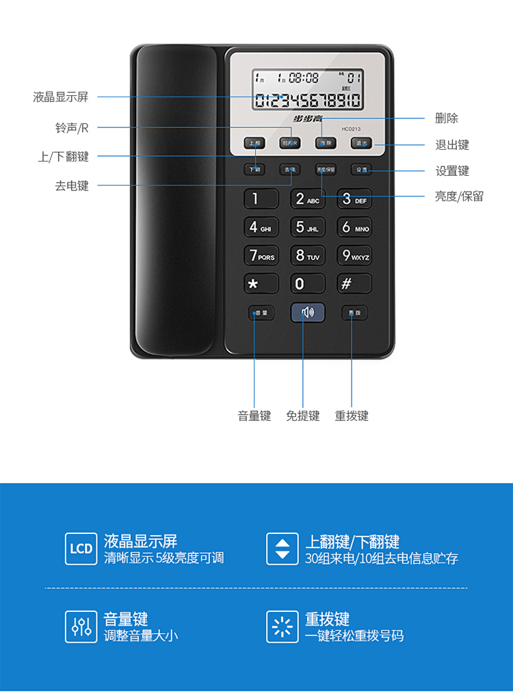 步步高HCD213电话机座机 固定电话免电池 一键免扰