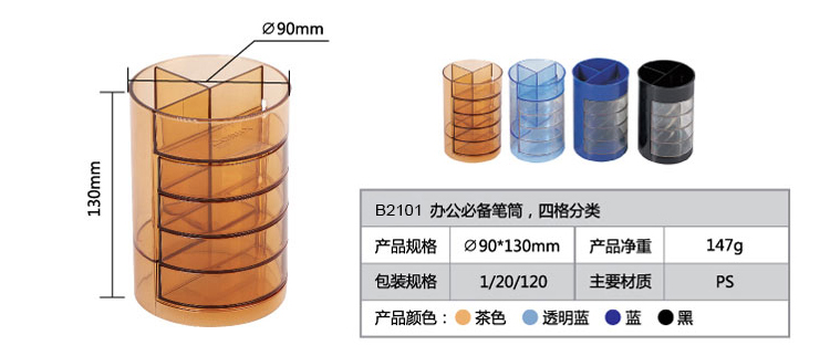 商品名称:齐心B2101办公笔筒 四格分类(单位:个)