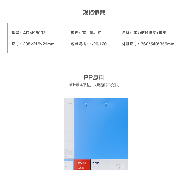 商品名称:晨光ADM95093实力派长押+板夹文件夹 蓝色 A4(单位:个)