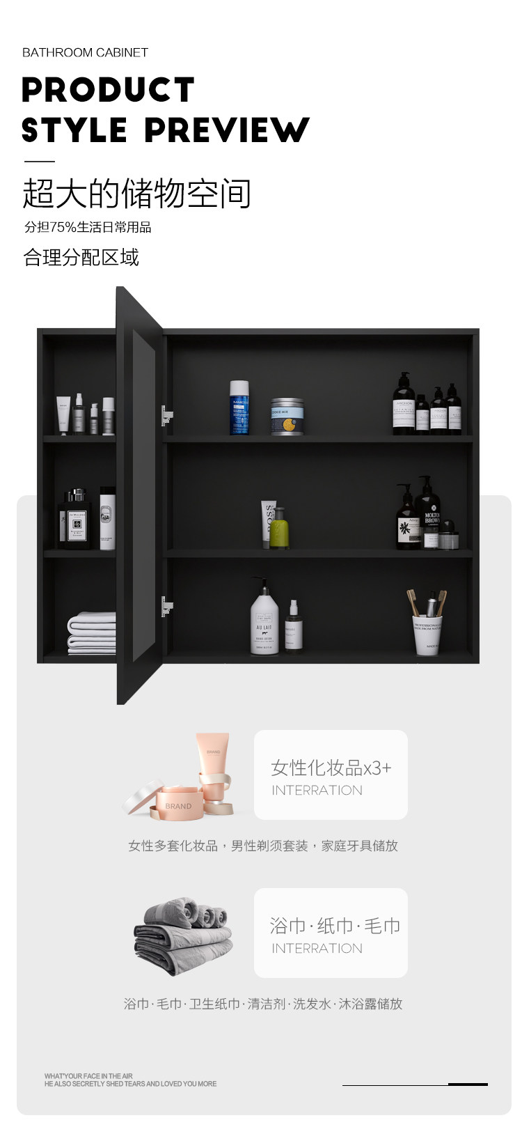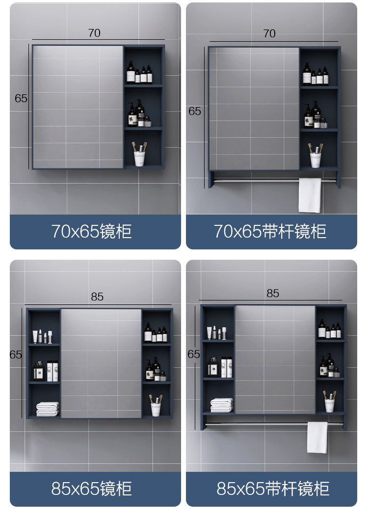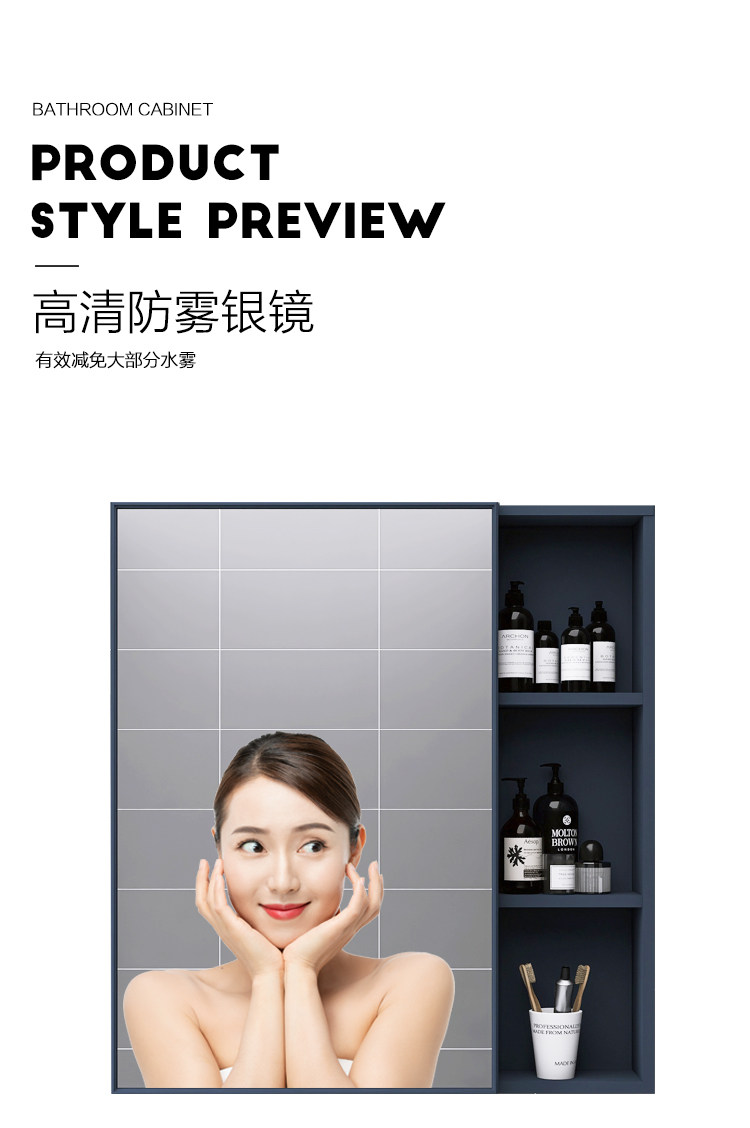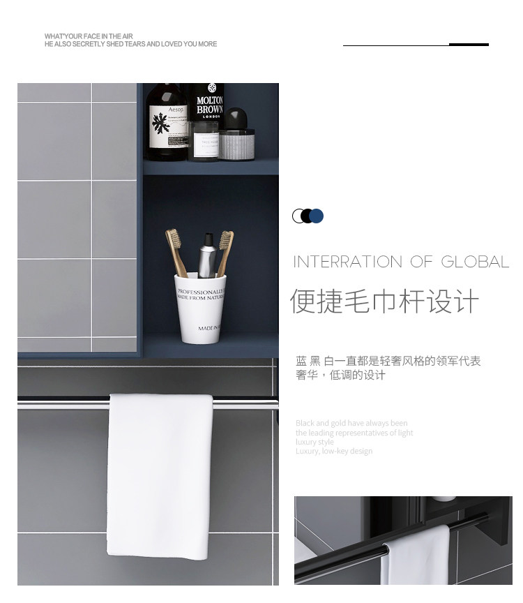 商品名称:太空铝带置物架浴室镜 55镜柜带毛巾杆 蓝色 55*65(单位:面)