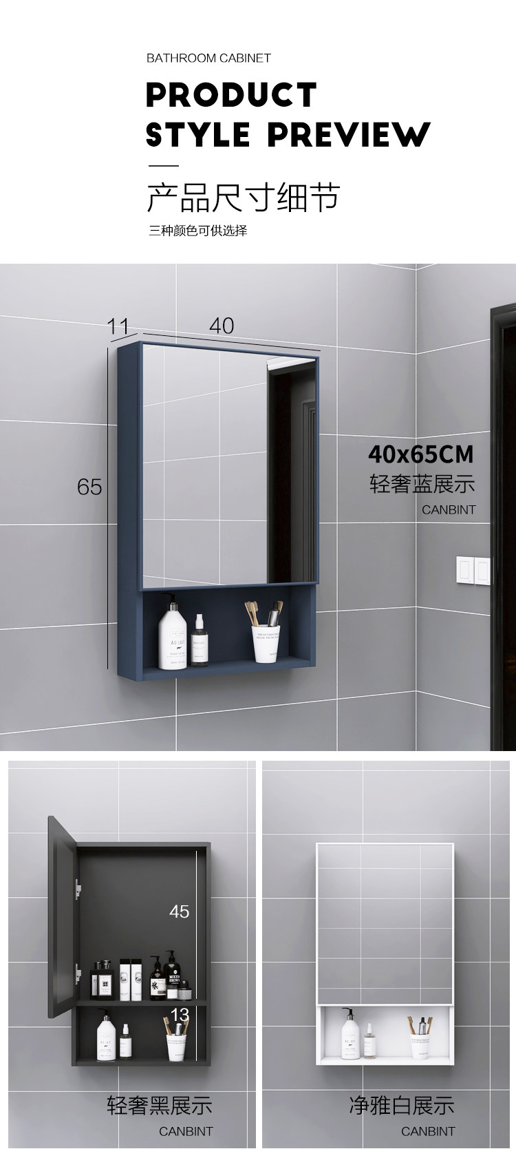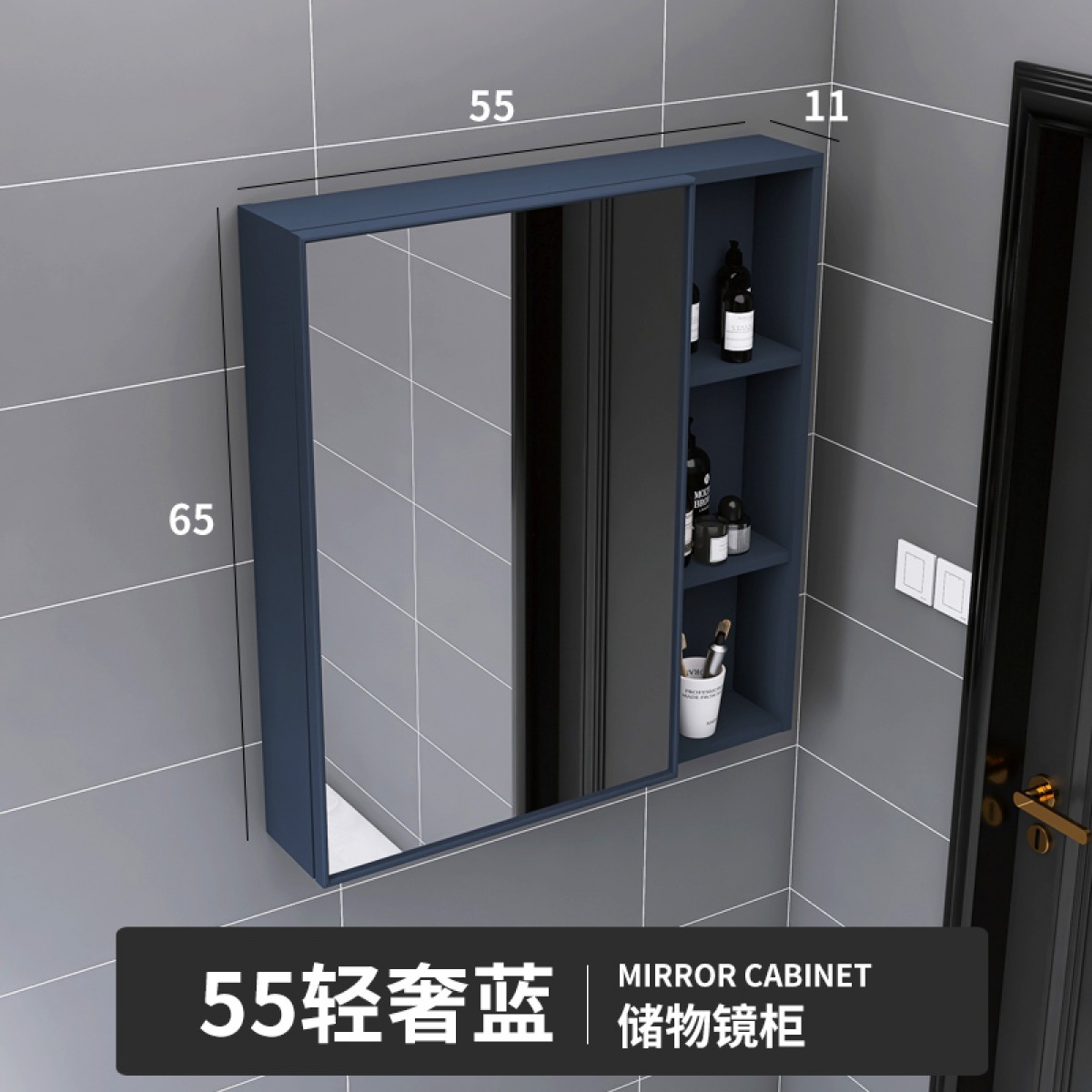 带置物架浴室镜 55镜柜带毛巾杆 蓝色 55*65