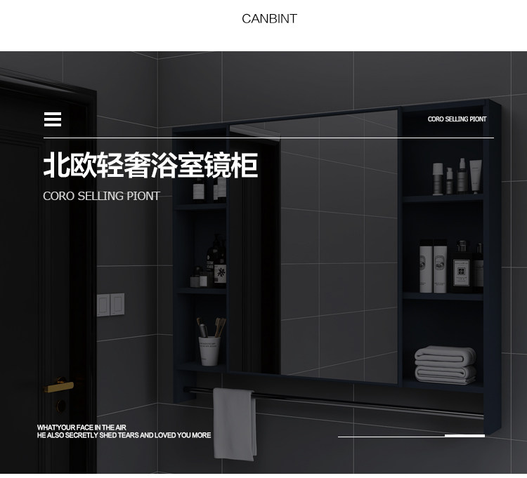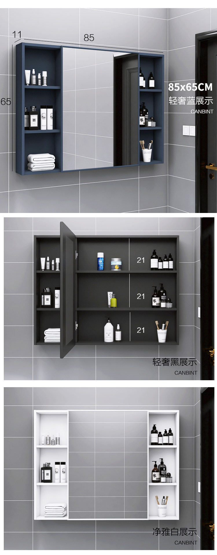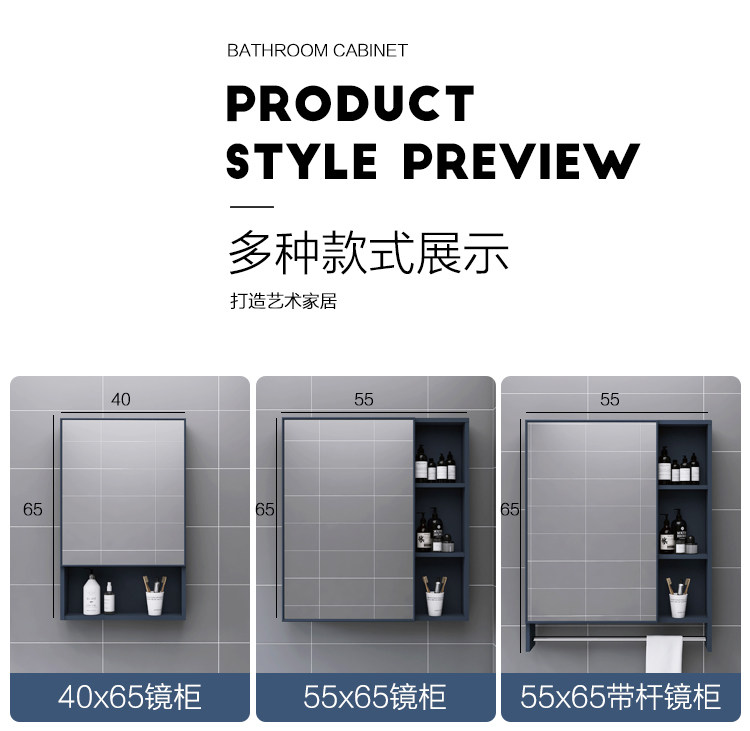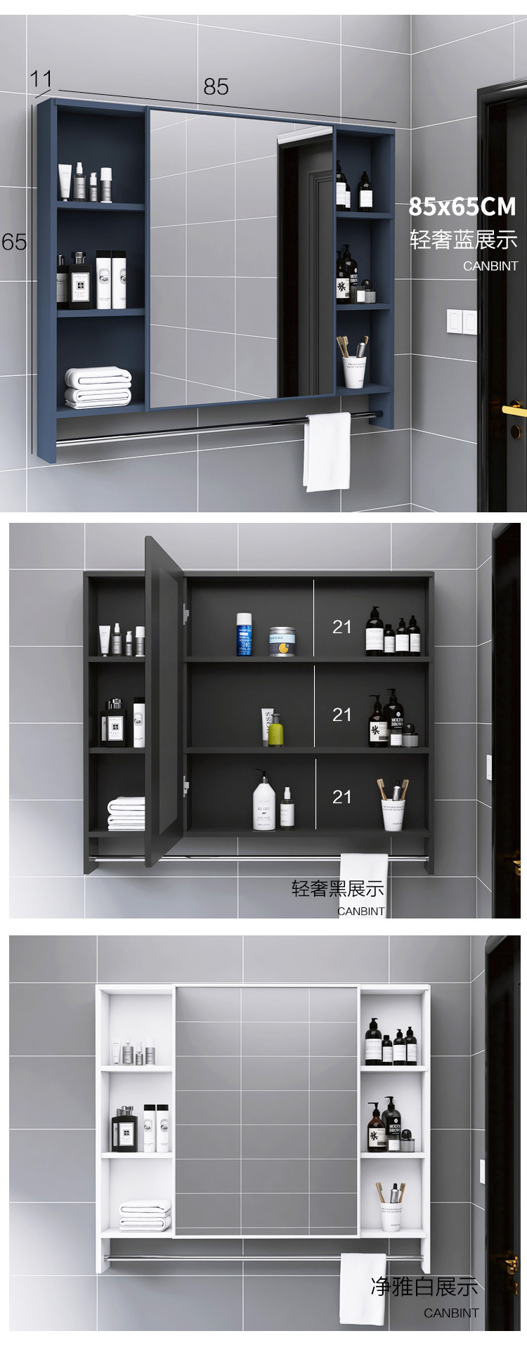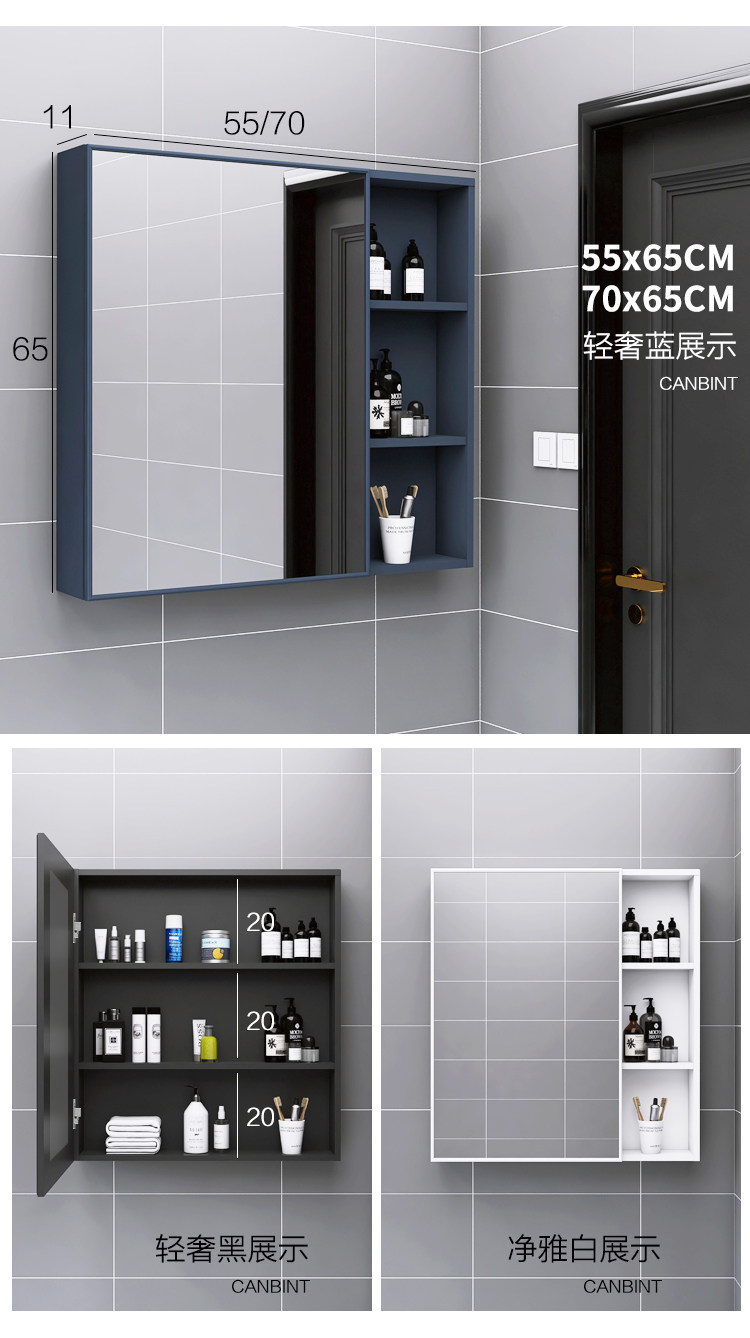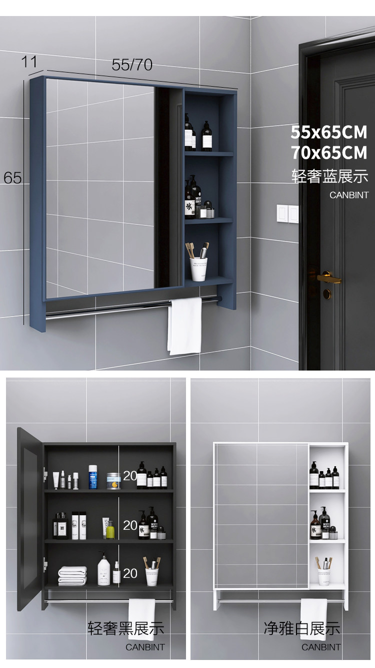 太空铝带置物架浴室镜 55镜柜带毛巾杆 蓝色 55*65(单位:面)