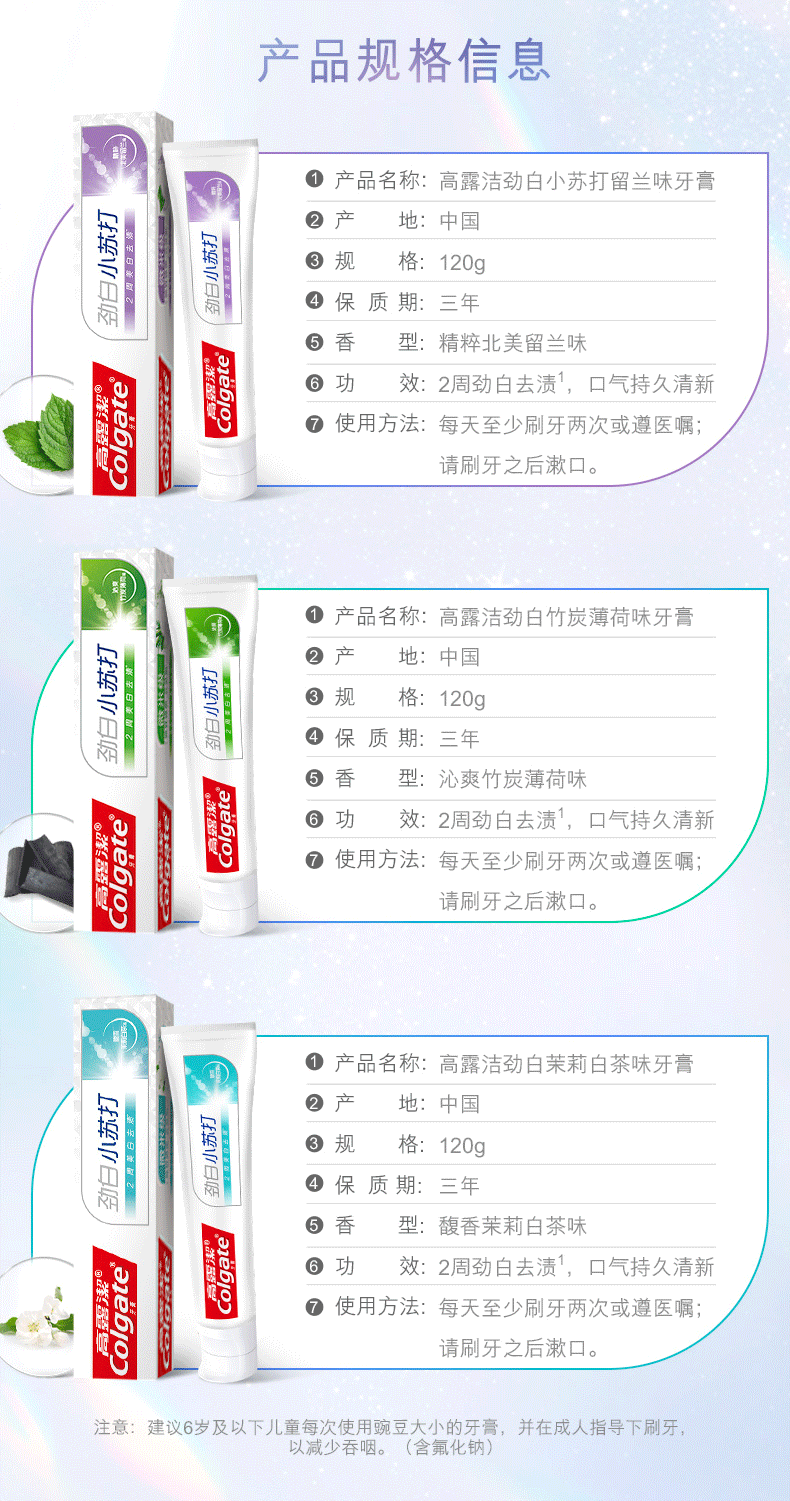 商品名称:高露洁组合装(劲白小苏打120g+茉莉白茶120g)(单位:组)