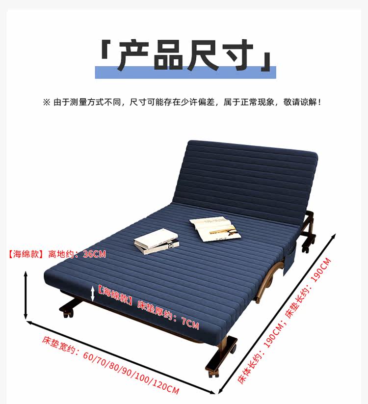 商品名称:未蓝生活 折叠床单人办公室午休床 折叠扶手90*190*36cm(单位:张)