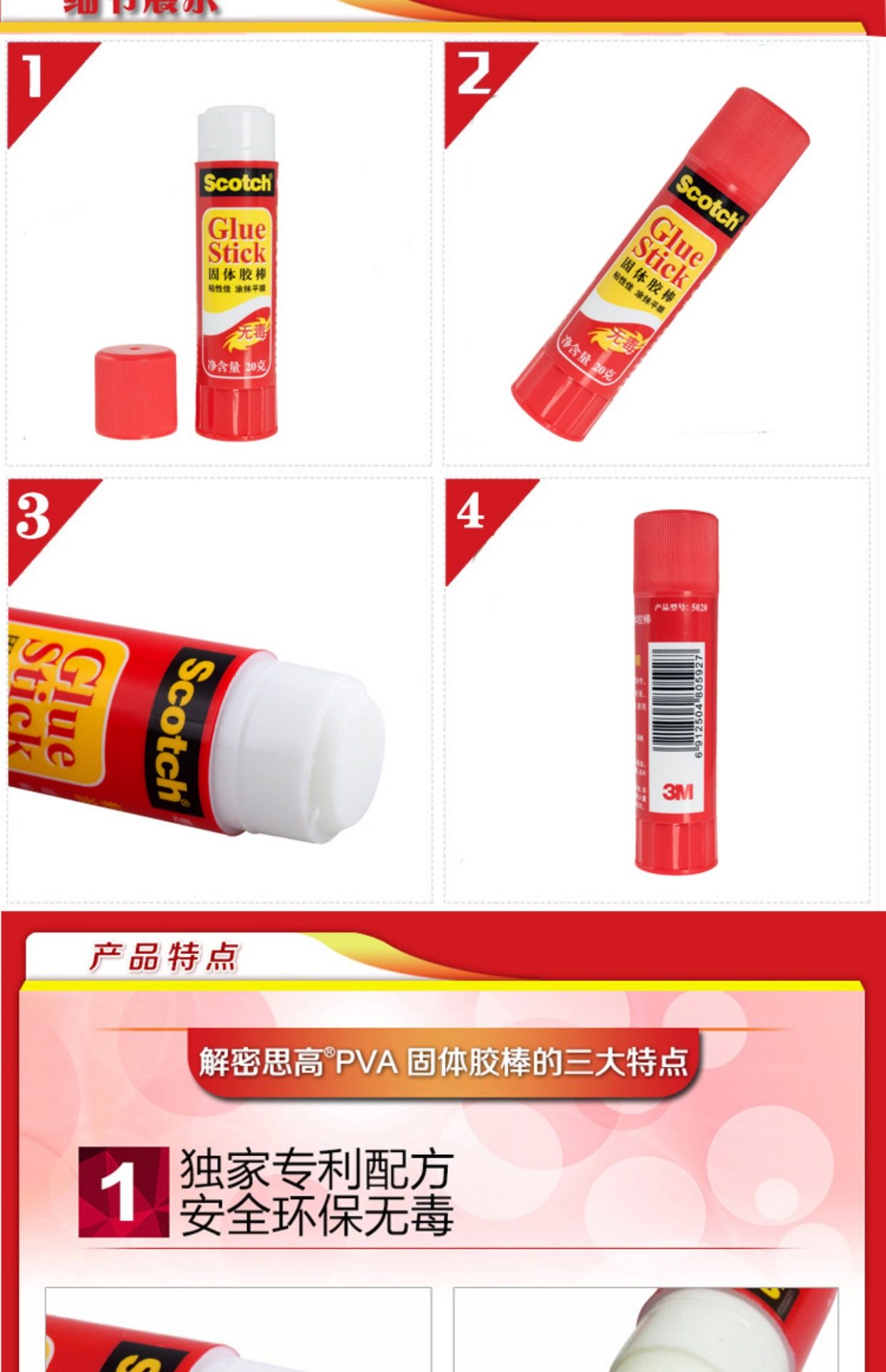 商品名称:3M 5020B固体胶棒PVA白色20g 24支/盒(单位:支)