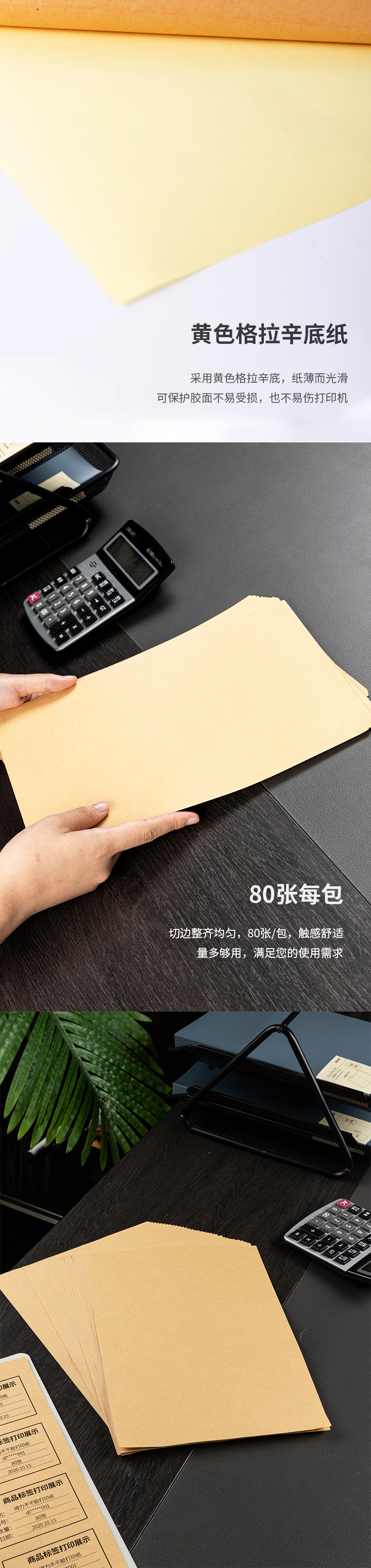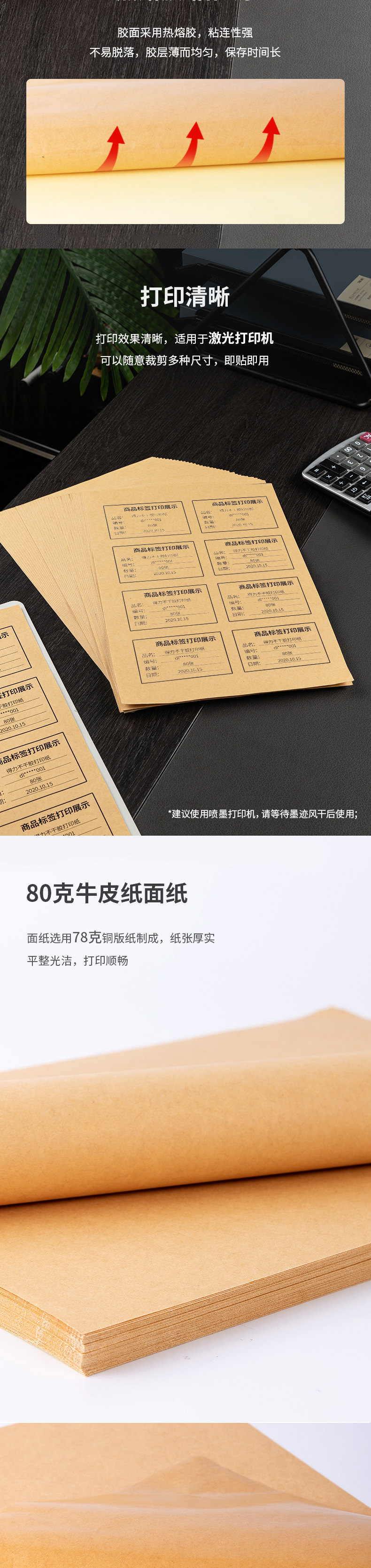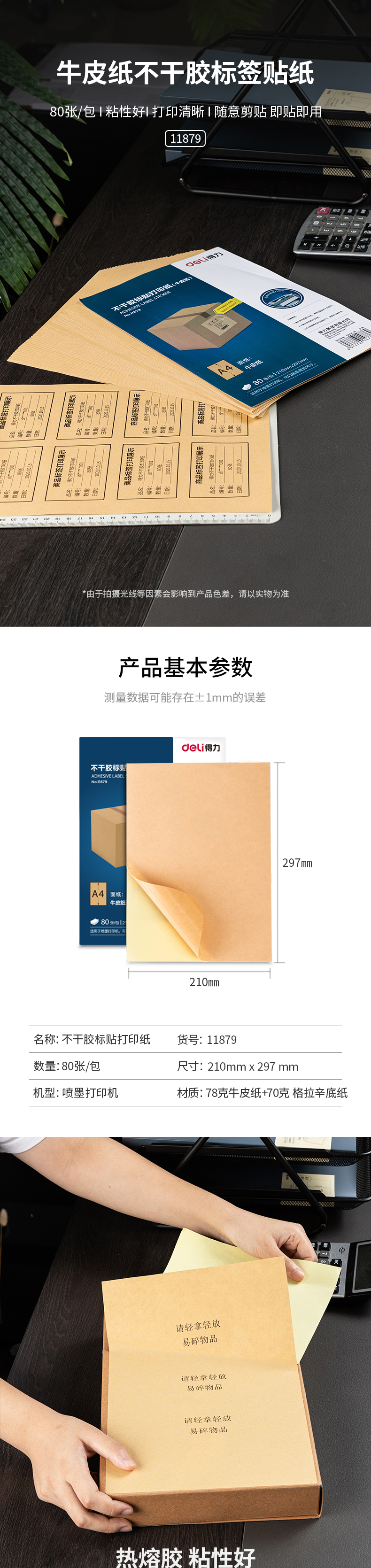 商品名称:得力11879不干胶标贴打印纸牛皮纸 混色 80张/包(单位:包)