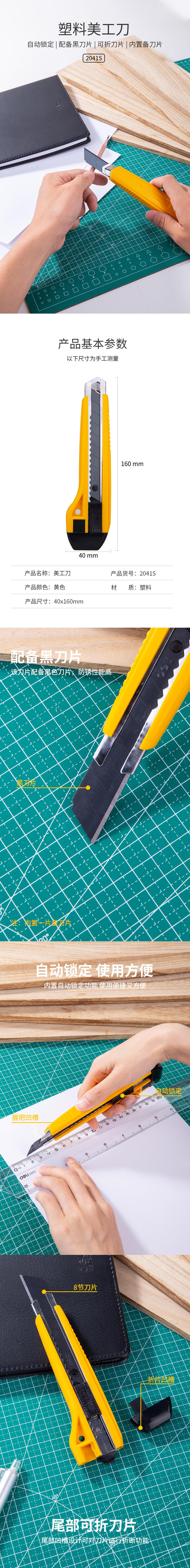 商品名称:得力2041S美工刀 黄色(单位:把)