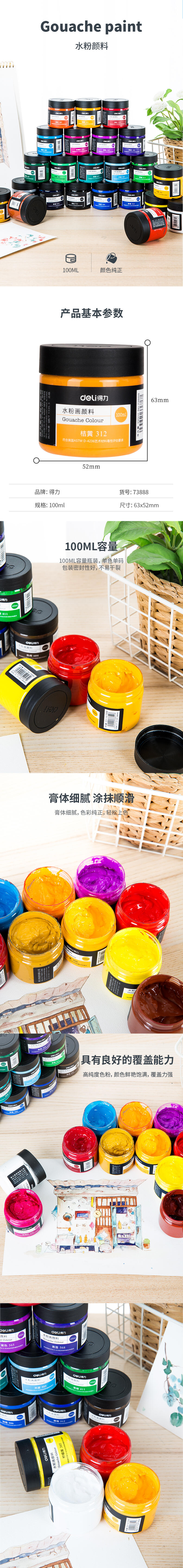 商品名称:得力73888水粉颜料 24色 100ml/瓶 24瓶/组(单位:组)