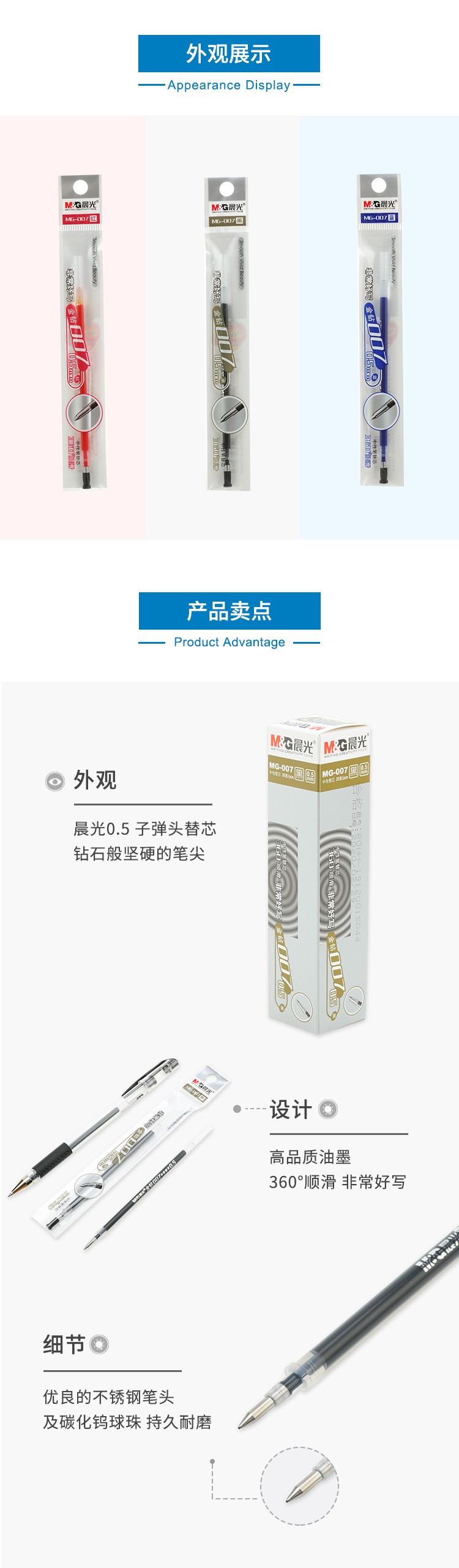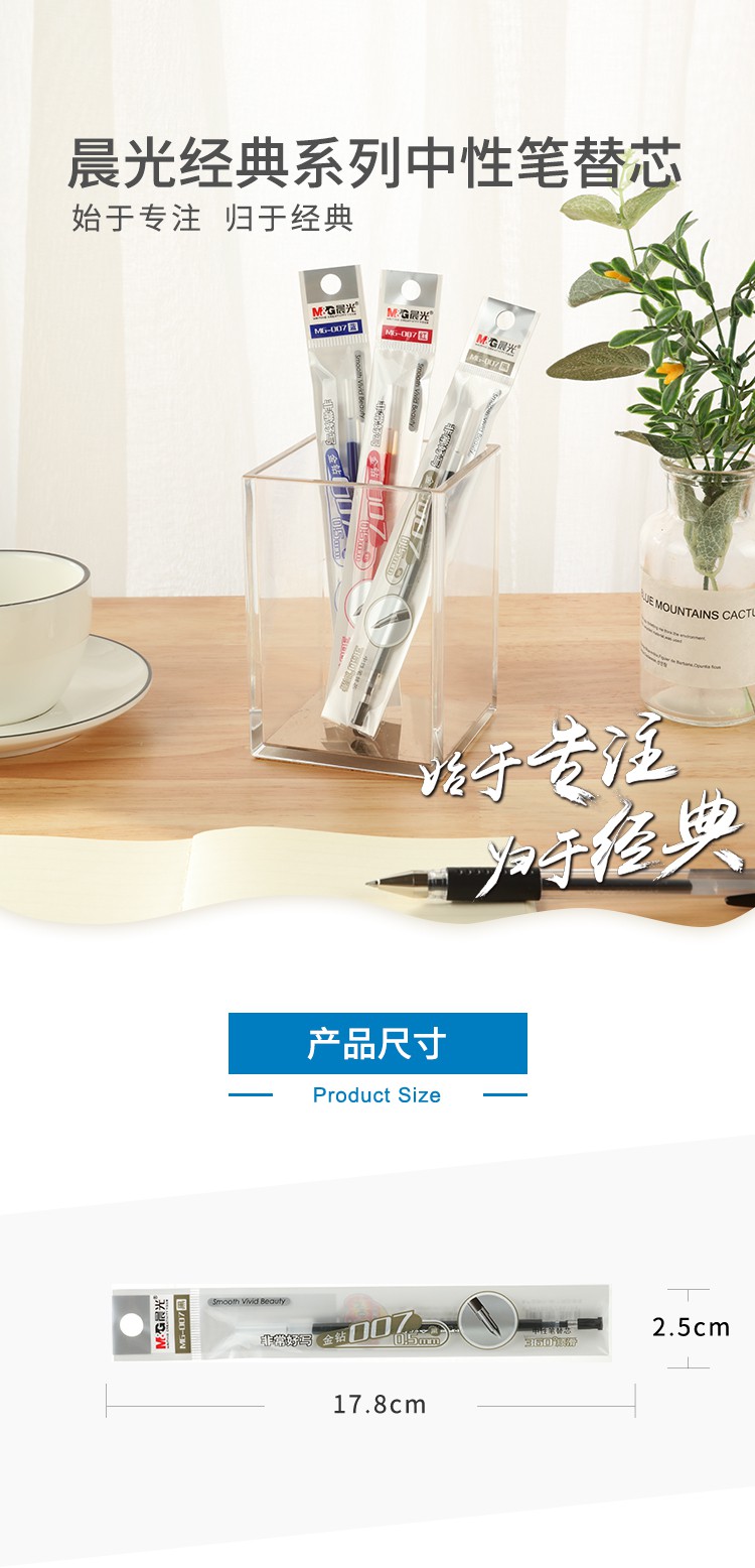 晨光MG007金钻中性笔替芯 红色 0.5mm 20支/盒(单位:盒)