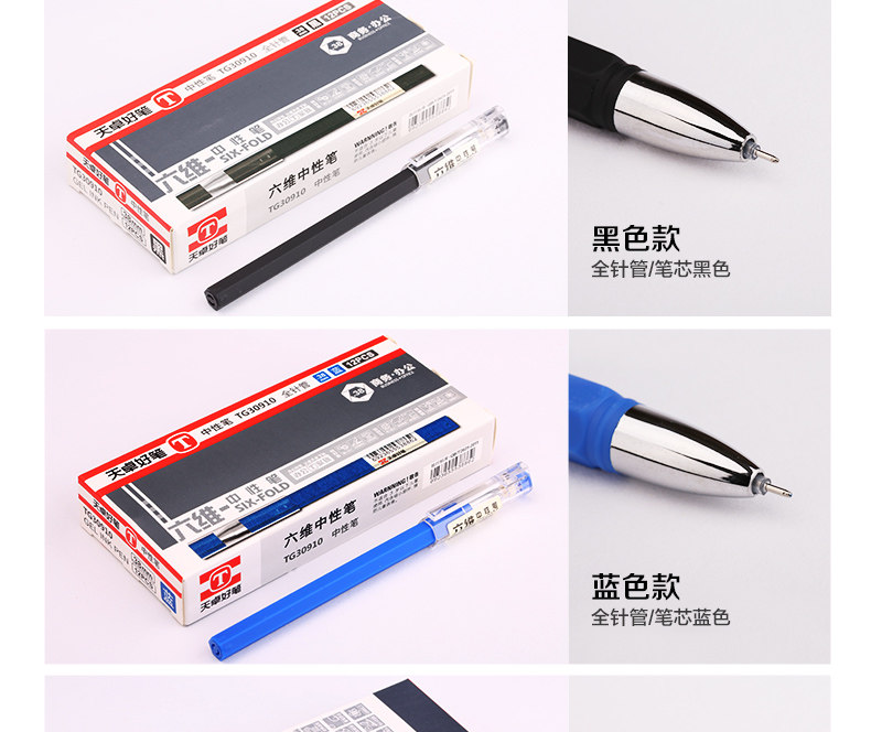 商品名称:天卓TG30910创意六角型中性笔签字笔 0.38mm 黑色 12支/盒(单位:盒)