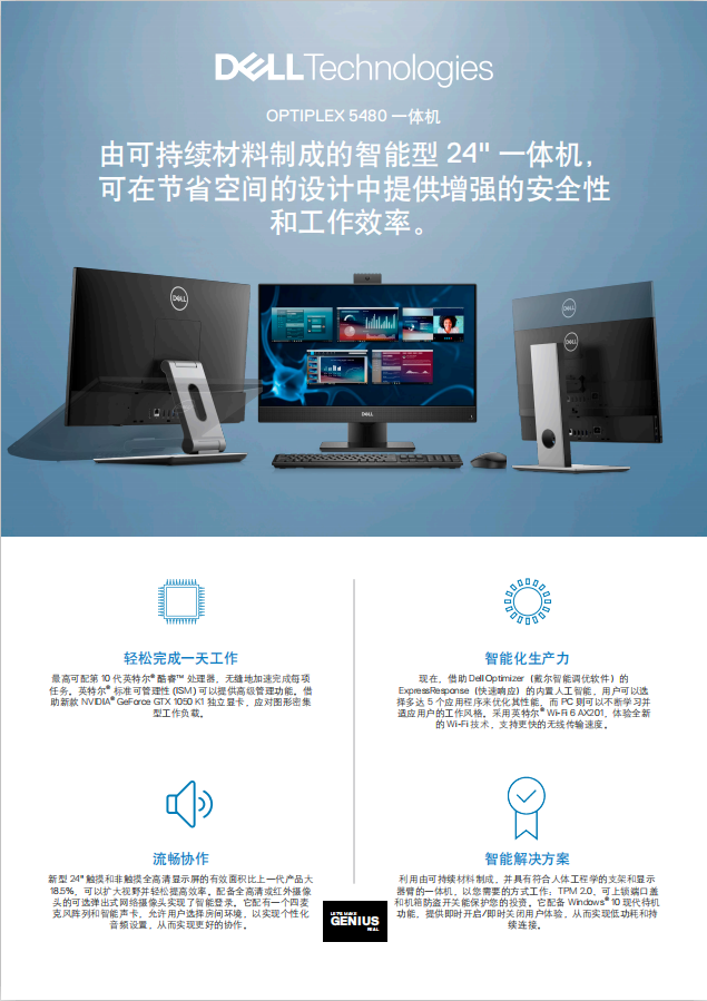 戴尔OptiPlex 5480 一体机电脑 (i5-10500T/8GB/256ssd/集显/Win10 home/23.8英寸显示器/摄像头+无线盘鼠标键/三年保修)