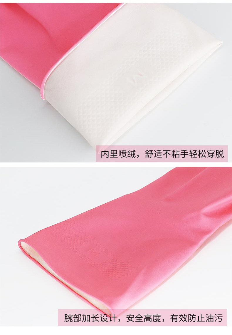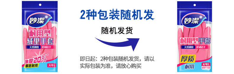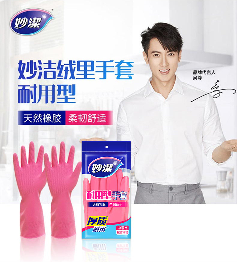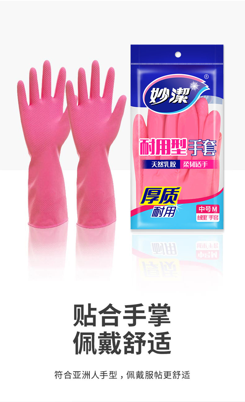 妙洁天然乳胶耐用型绒里手套 M码