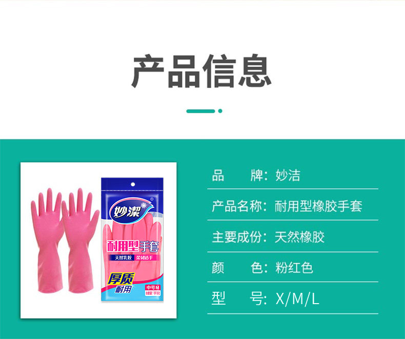 商品名称:妙洁天然乳胶耐用型手套 M码(单位:双)
