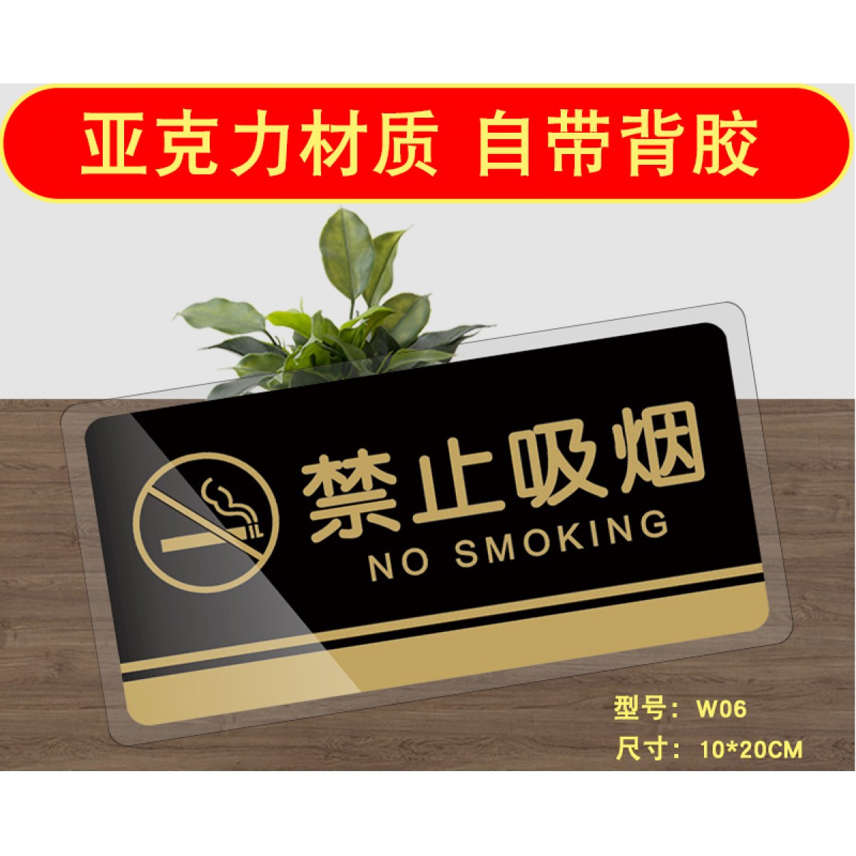 商品名称:禁止吸烟提示牌 亚克力材质标识标牌 10*20cm(单位:个)
