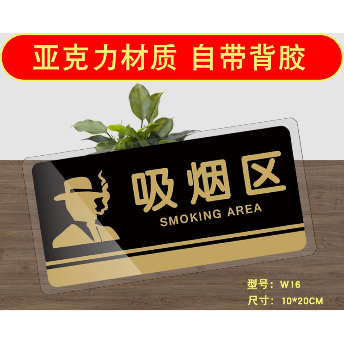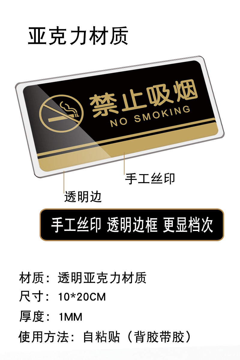 商品名称:吸烟区提示牌 亚克力材质标识标牌 10*20cm(单位:个)