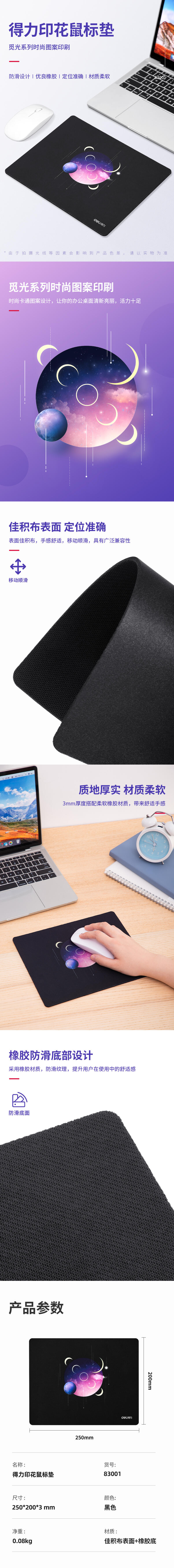 商品名称:得力83001印花鼠标垫 黑色(单位:张)
