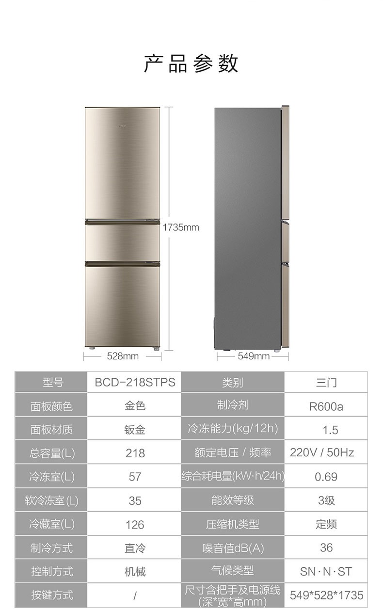 海尔BCD-218STPS电冰箱 三门 218L(单位:台)