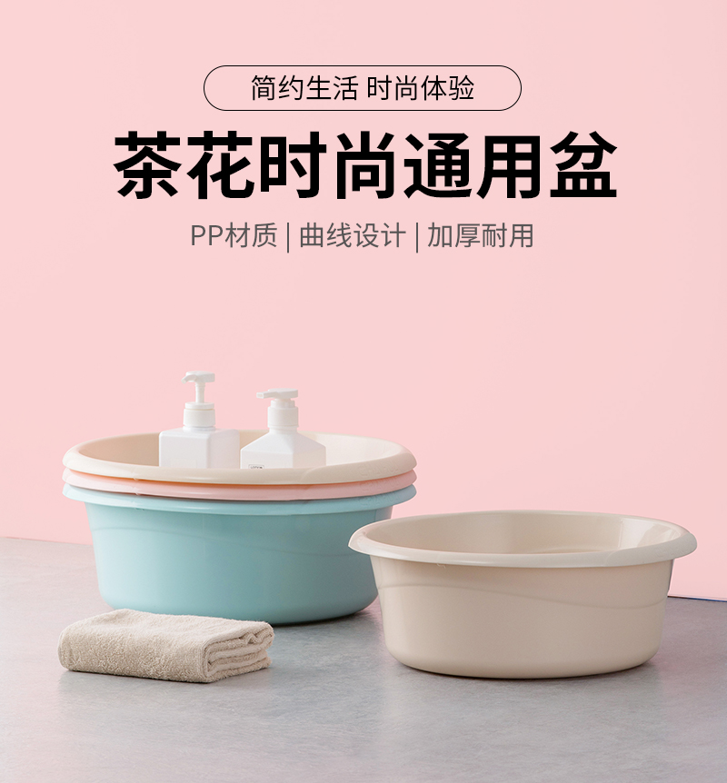 茶花03401K塑料洗脸盆子洗衣盆42cm直径*15.5cm高 颜色随机(单位:个)
