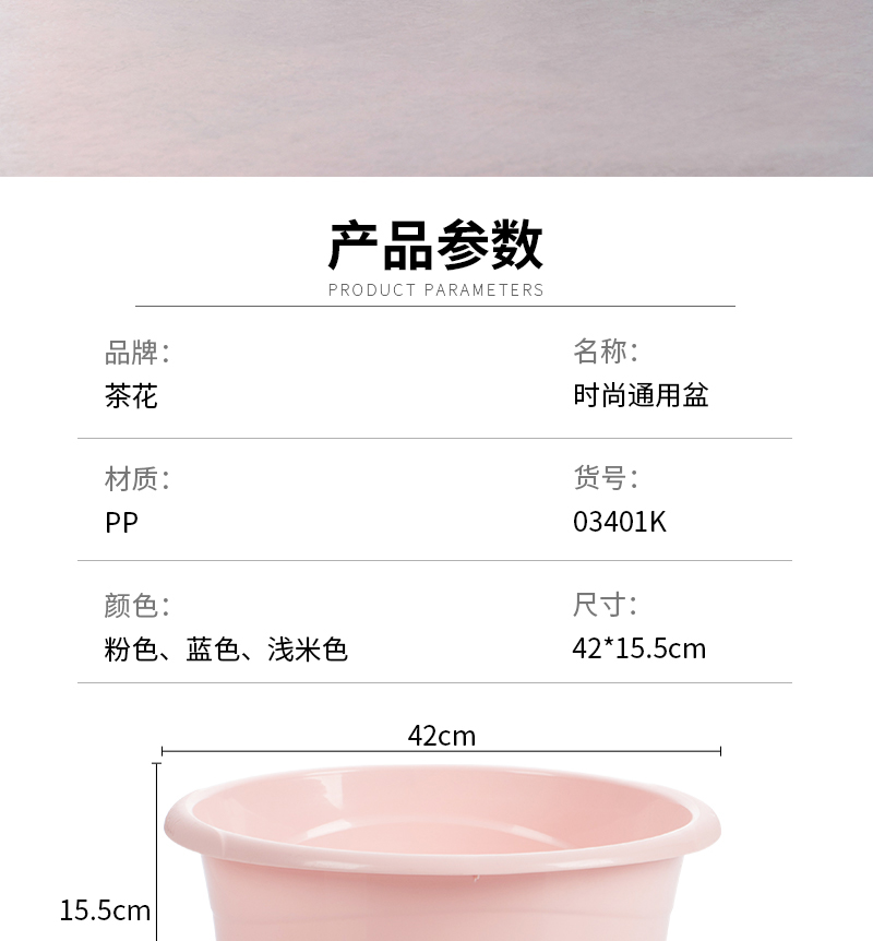 商品名称:茶花03401K塑料洗脸盆子洗衣盆42cm直径*15.5cm高 颜色随机(单位:个)