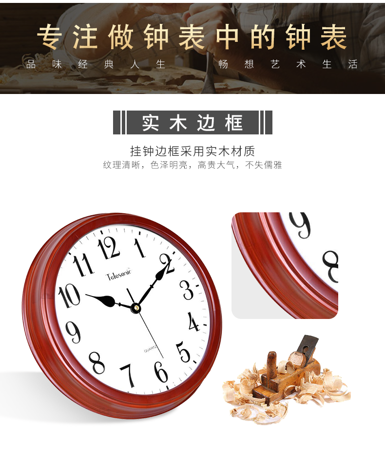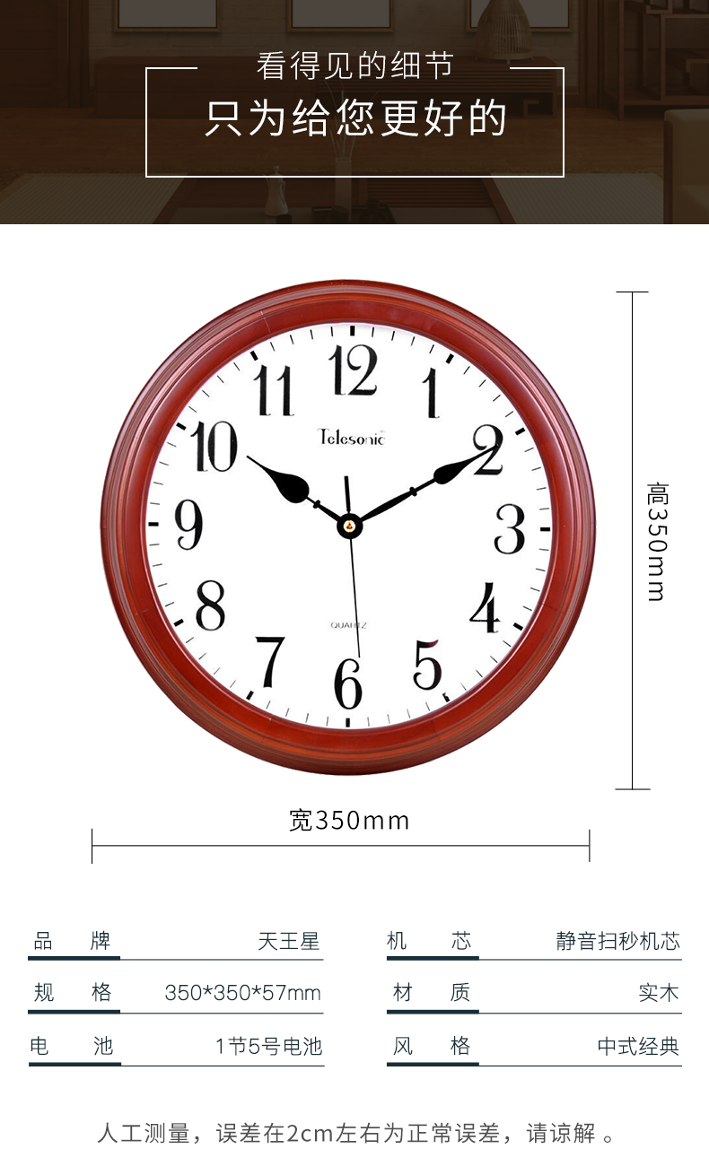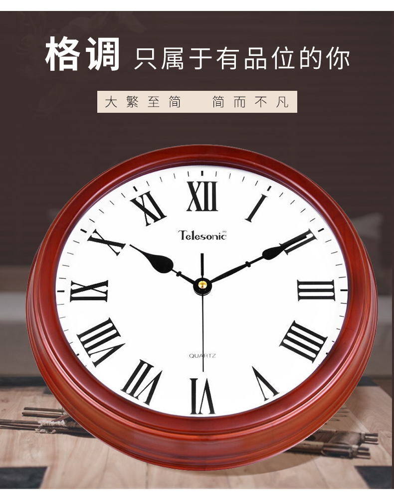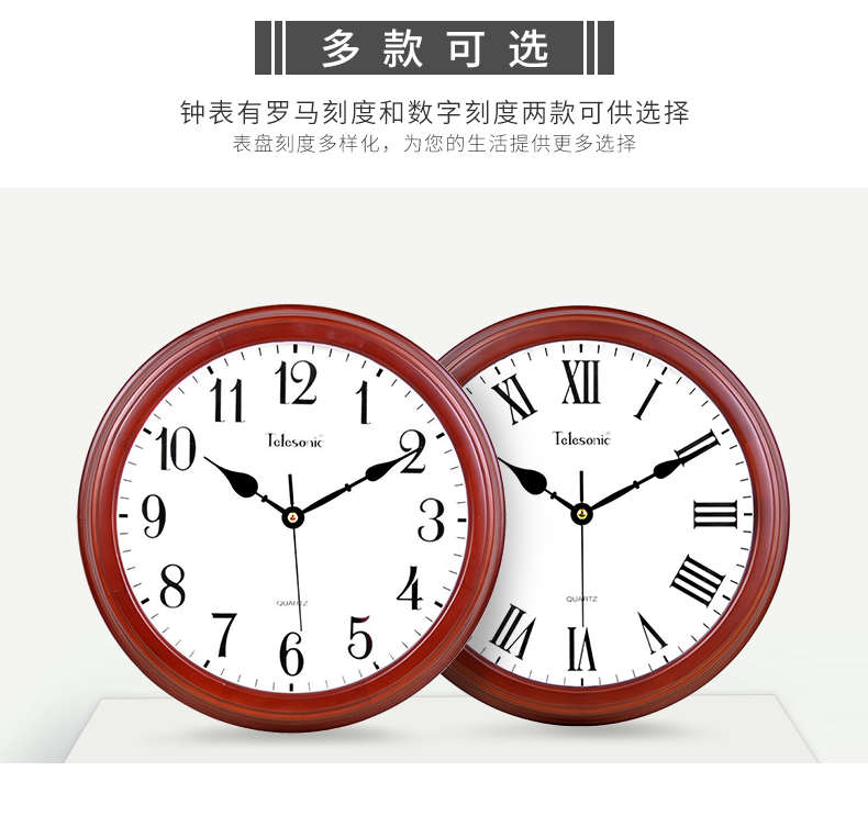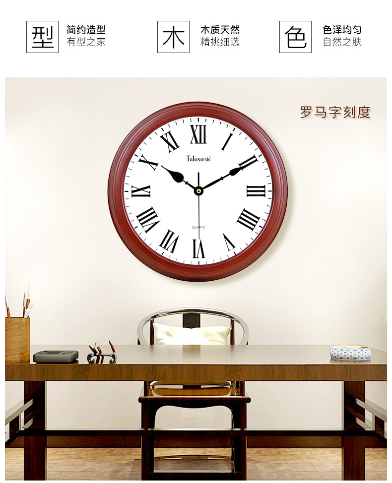 商品名称:天王星W9313 -2实木挂钟 欧式田园客厅静音时钟石英钟刻度罗马数字挂钟(单位:个)