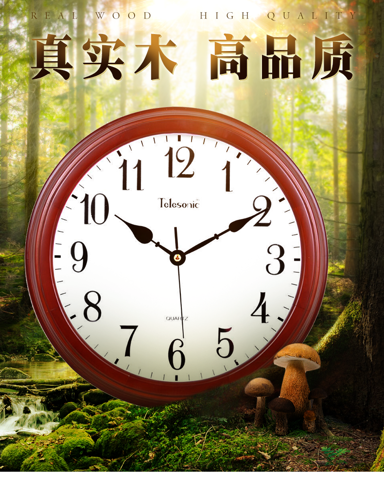 天王星W9313 -2实木挂钟 欧式田园客厅静音时钟石英钟刻度罗马数字挂钟